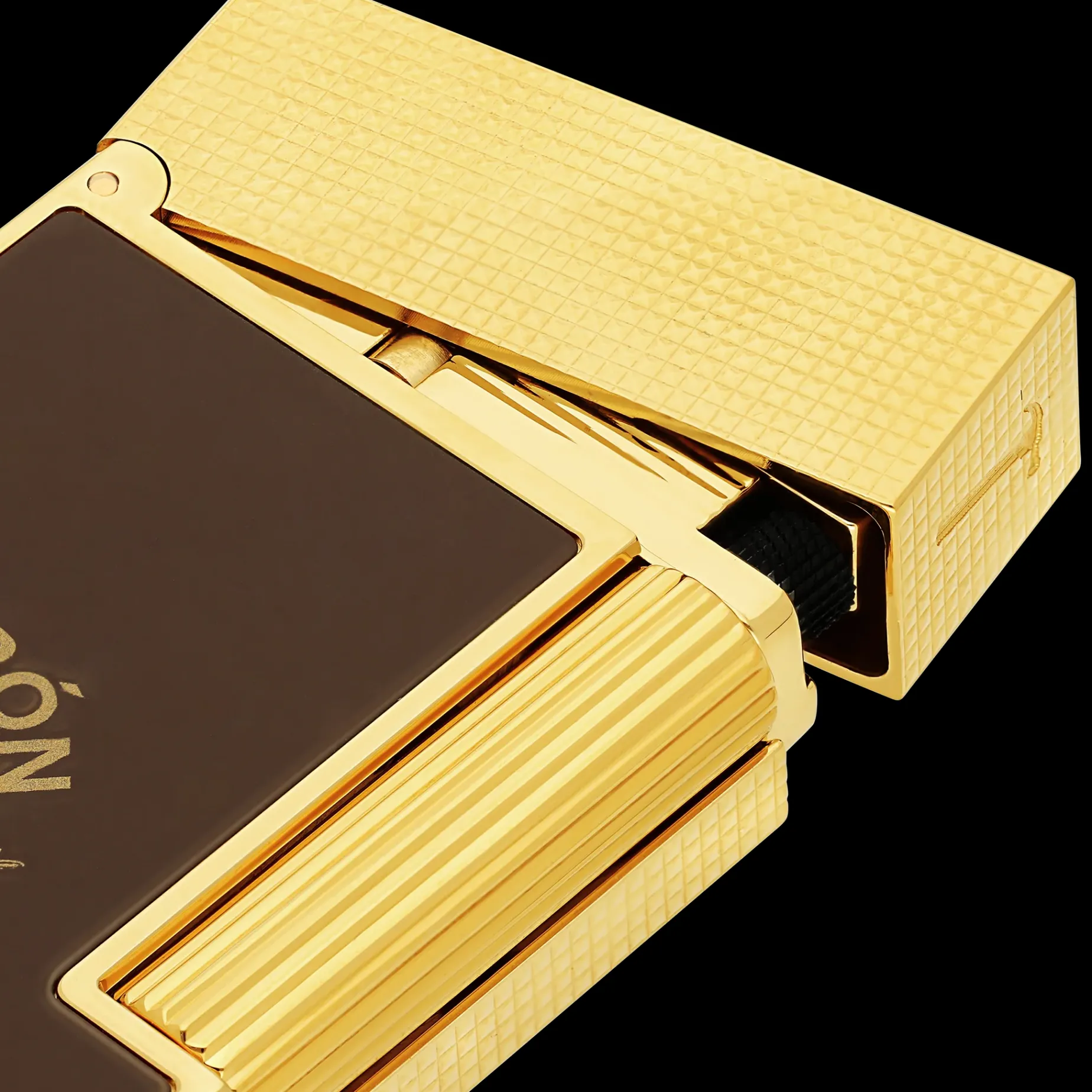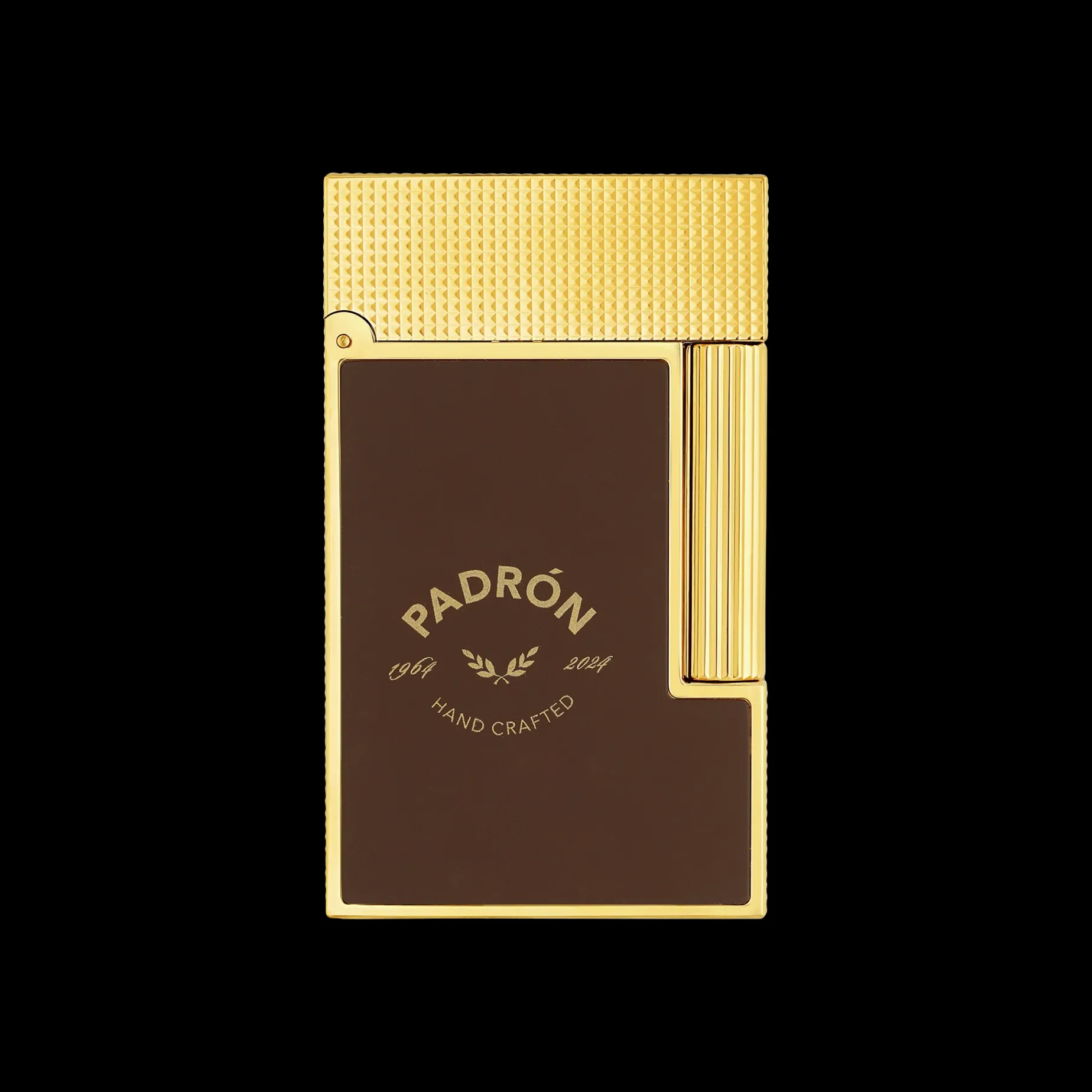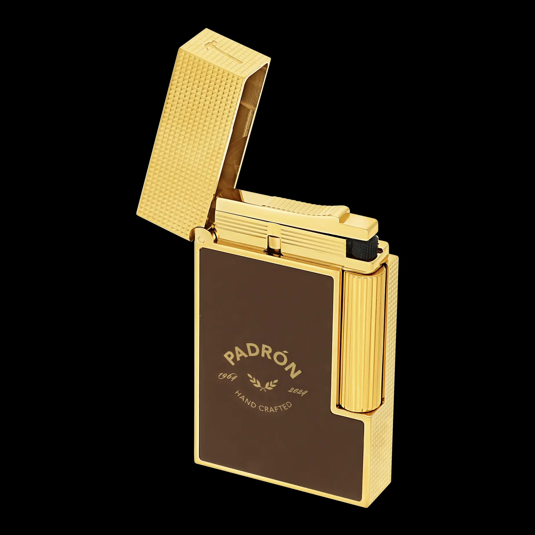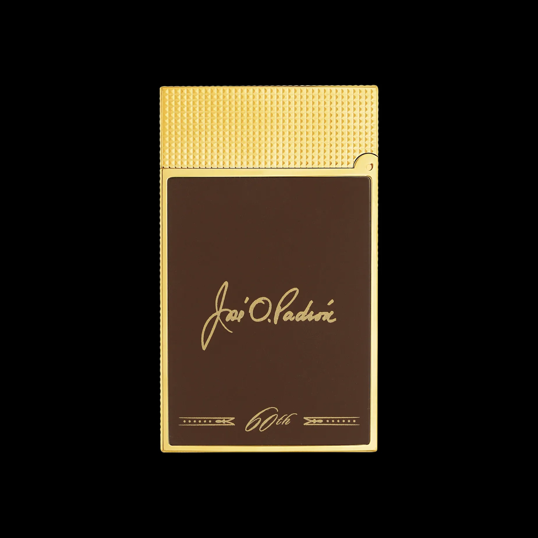 On the occasion of the 60th anniversary of the Padrón house, S.T. Dupont announces a special collaboration. The S.T. Dupont x Padrón collection offers distinctive lighters and cigar accessories. Its yellow gold finishes embody the Padrón cigar band, and its brown lacquer refers to the color of their wrapper leaf, the tobacco leaf that wraps a cigar blend.Ligne 2 Cling lighter with matte brown lacquer and gold finishes. Engraving of the island of Cuba and the initials ‘JOP’ of the founder of the Cuban brand. Features a dual yellow flame and the famous ‘Cling’ sound upon opening.The lighter is delivered empty of gas; refill sold separately.