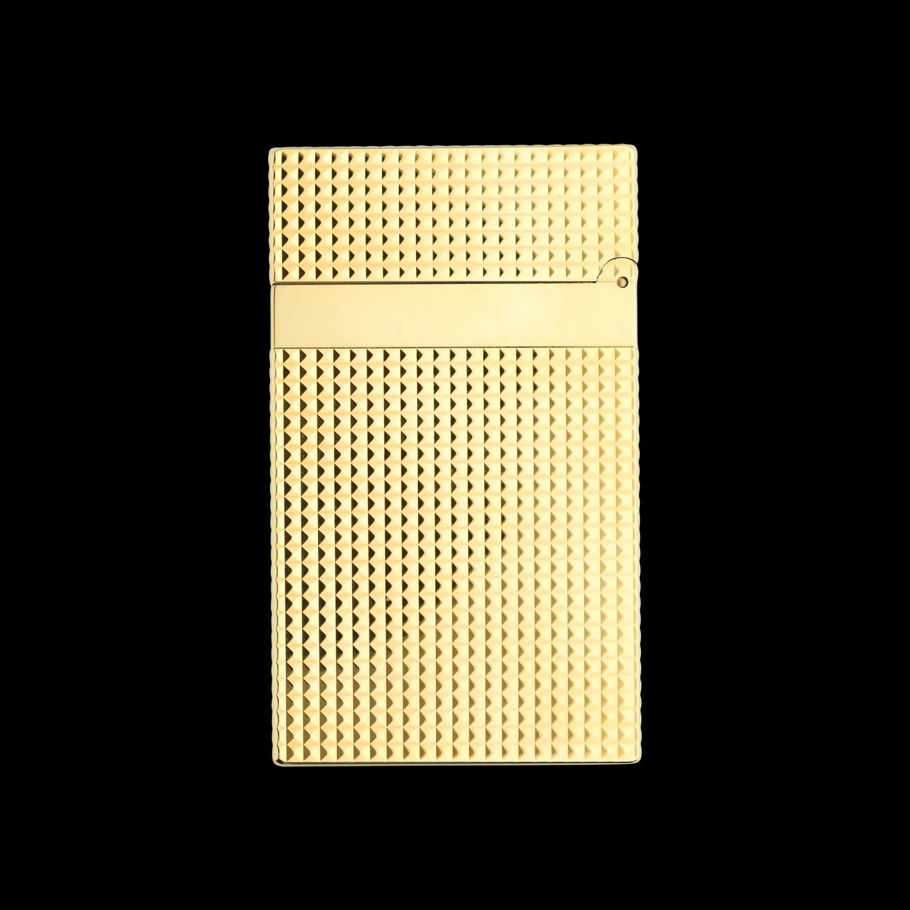 Double flame yellow lighter. Decorated with the iconic house pattern: diamond tip and plated in yellow gold. Featuring the famous “Cling” when opening. Associated lighter stone: black (REF 900600). Associated gas refill: yellow (REF 900432). Lighter delivered empty of gas, refill sold separately.