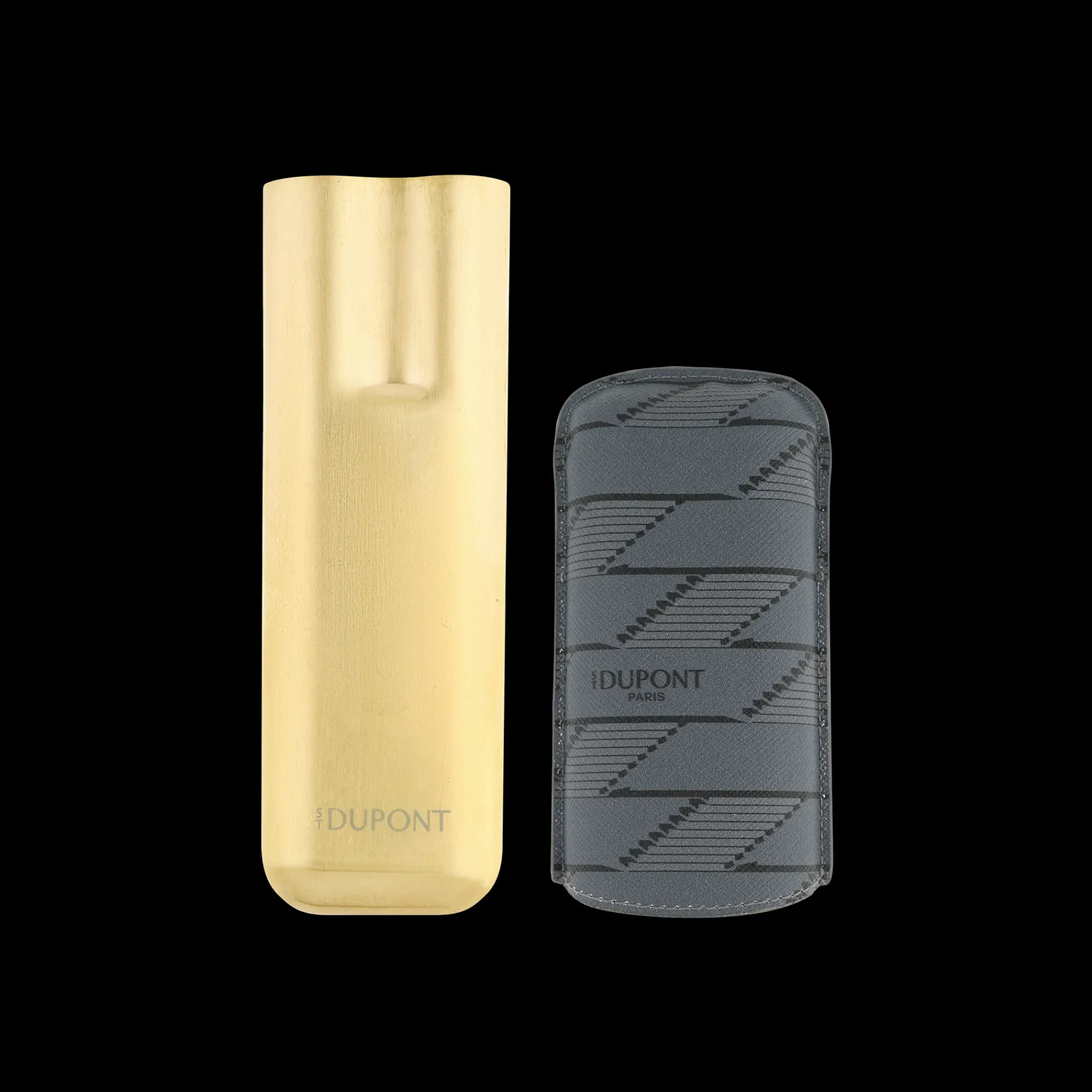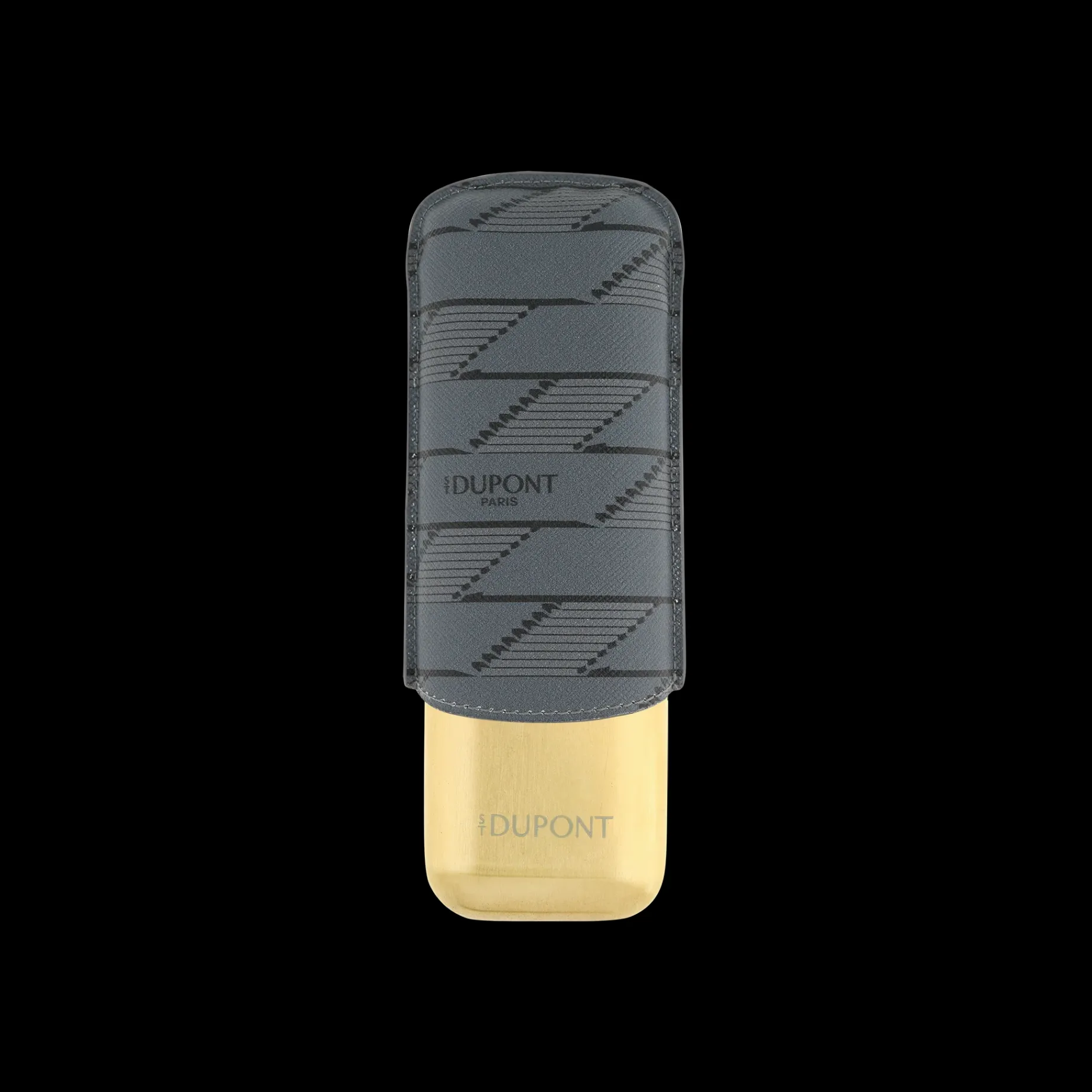 Craftsmanship in metal, as well as the art of lacquer and coated leather, showcase the expertise of S.T. Dupont in the Monogram 1872 collection. Well-rooted in their time, the pieces in the collection all feature the new S.T. Dupont logo鈥攗pright, determined, and proud.Coated canvas case for 2 cigars decorated with the Monogram 1872 pattern in black and a gold metal base.