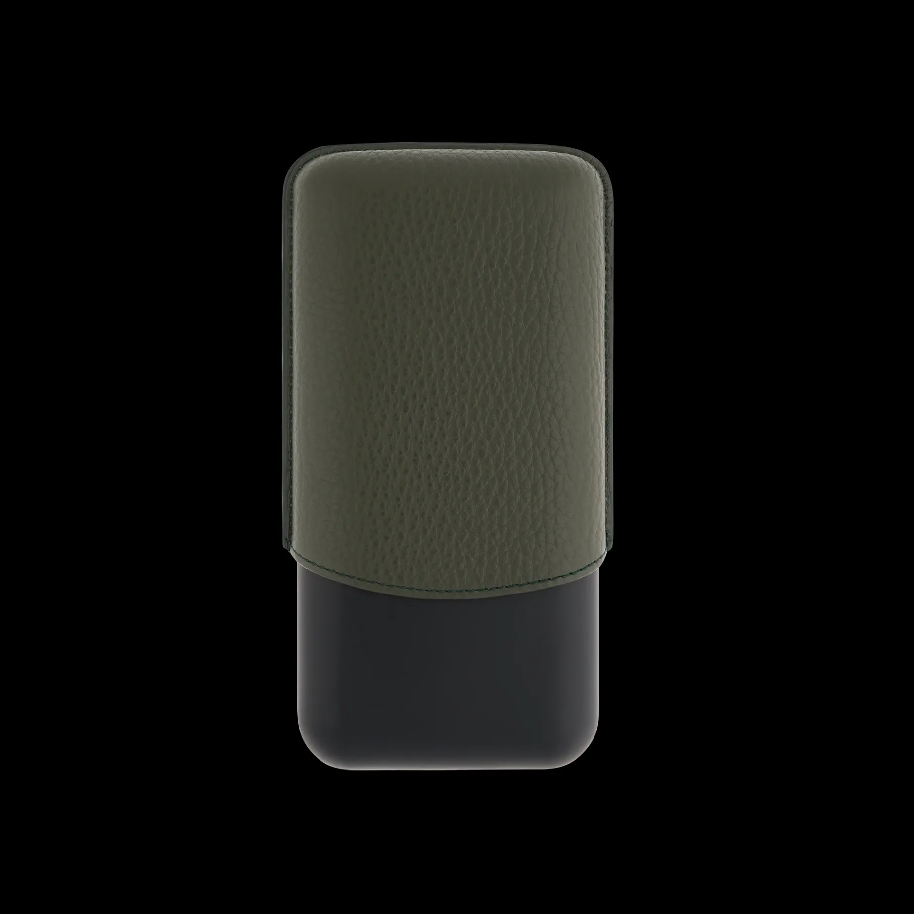 Khaki 3-cigar case, matt grained. max 24.5 mm.