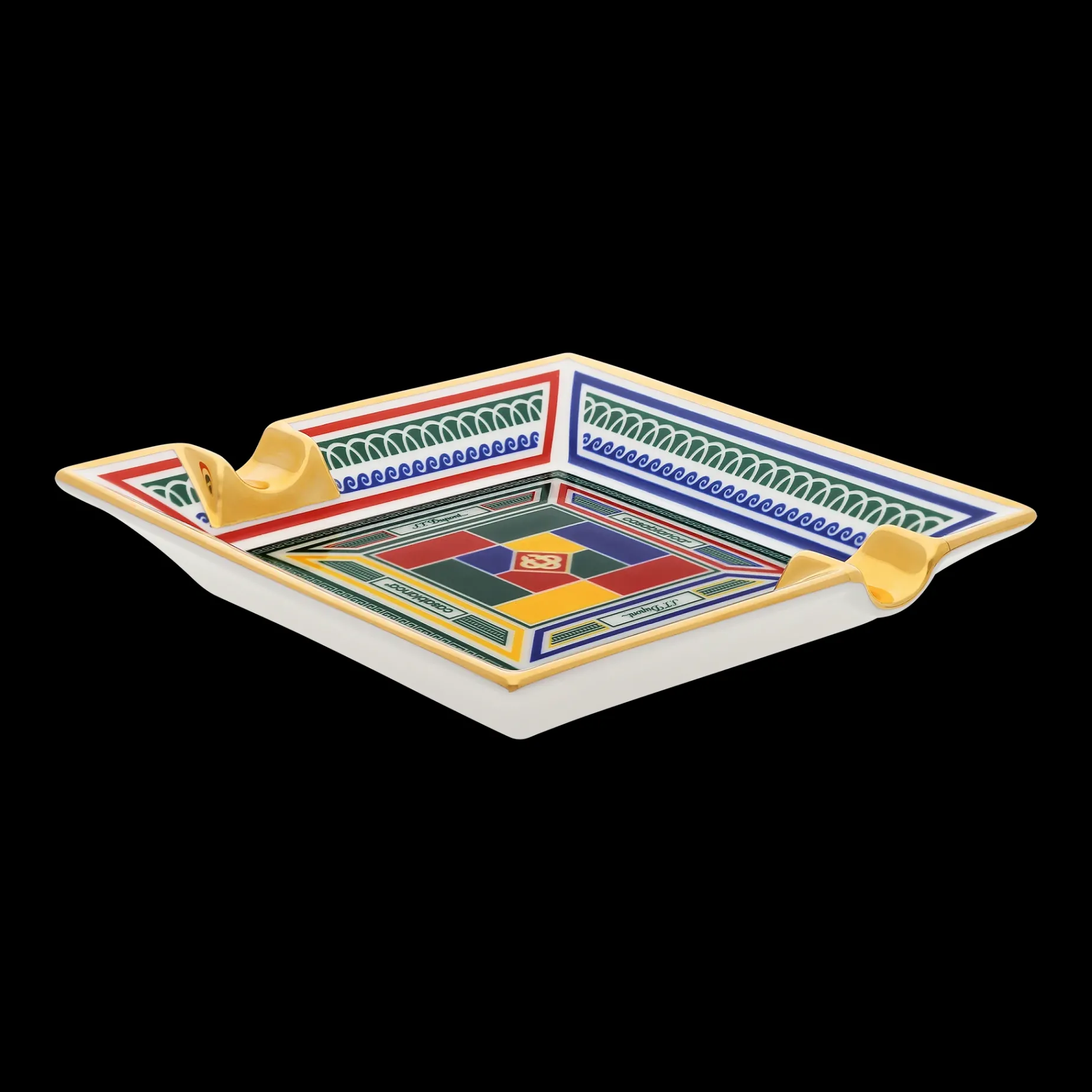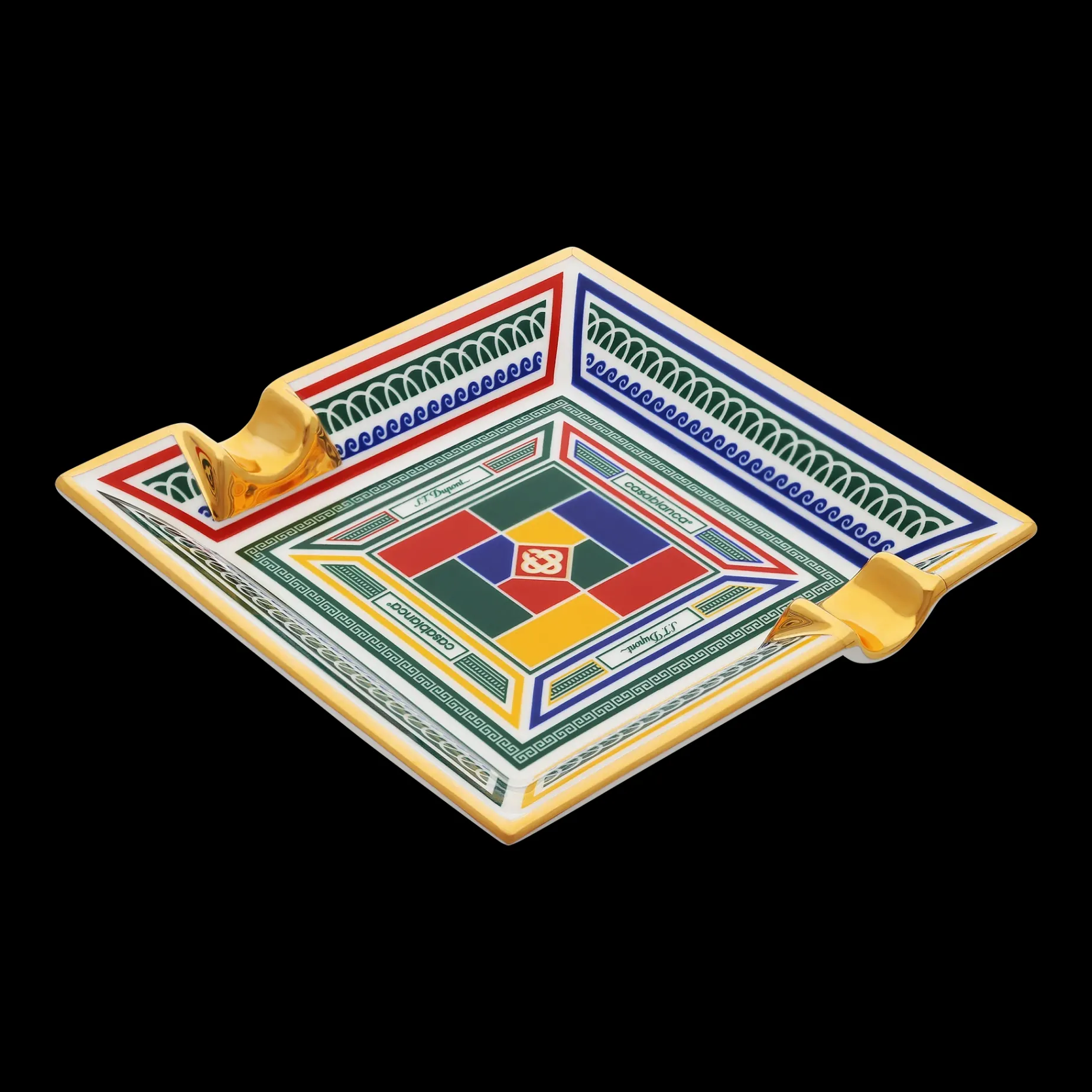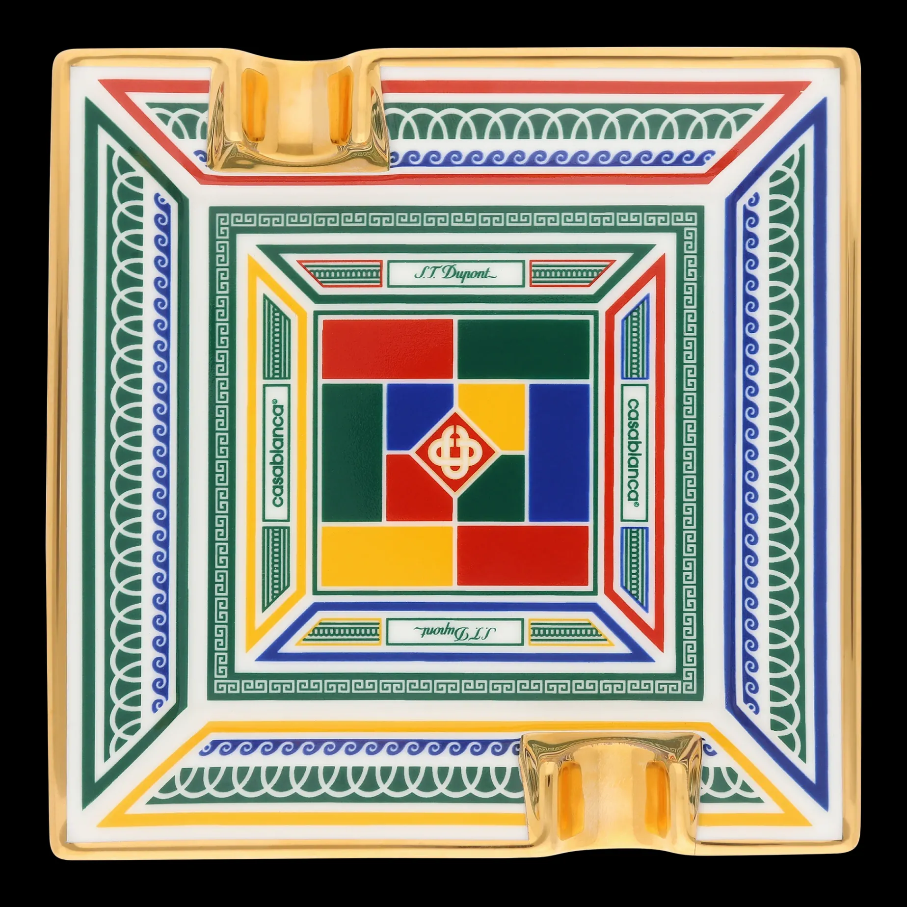 S.T. Dupont joins forces with luxury house Casablanca for a neo-antique collaboration that celebrates the beauty and elegance of sport.Small ashtray with multicoloured tennis motif. Hand-painted gold finish on the grooves.