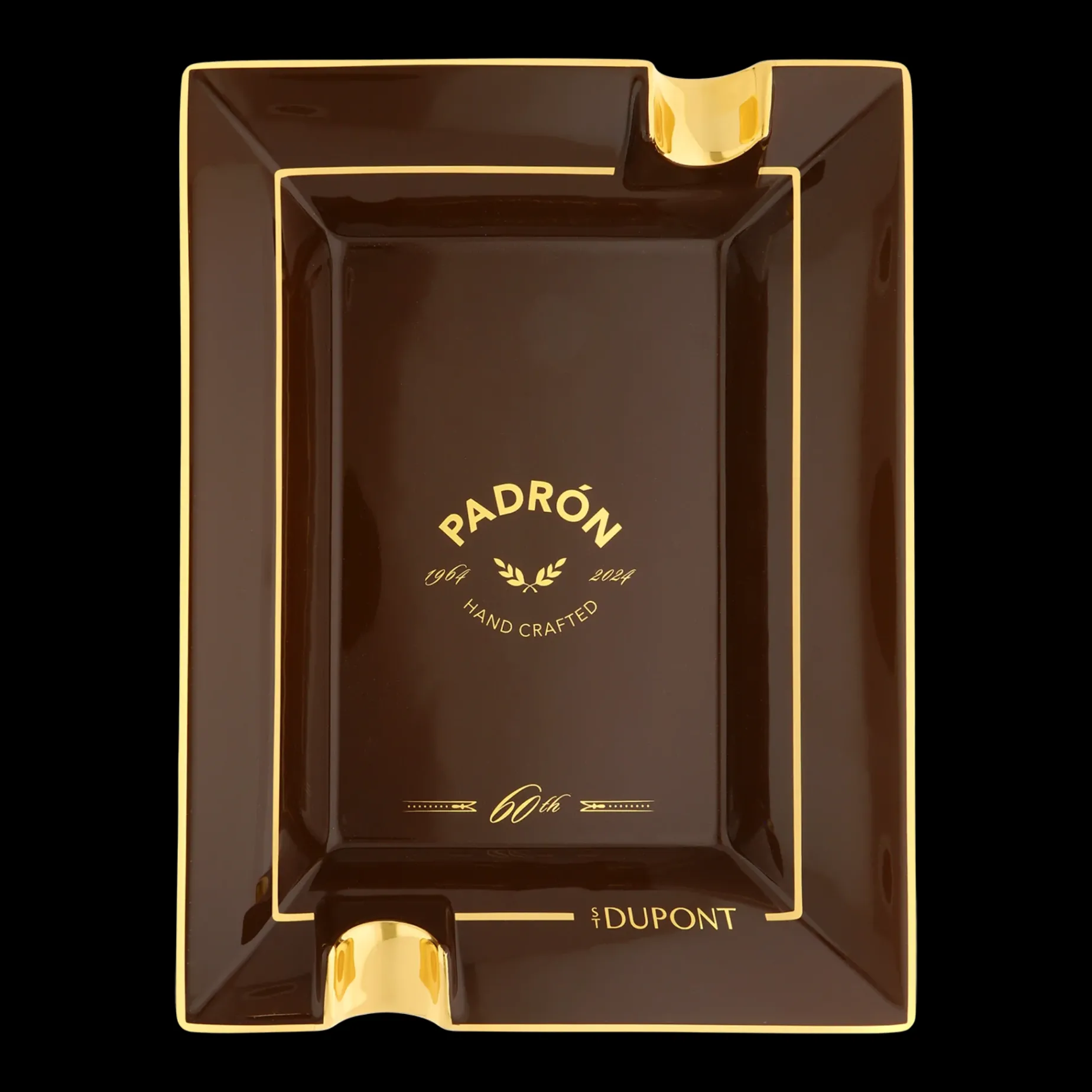 On the occasion of the 60th anniversary of the Padrón house, S.T. Dupont announces a special collaboration. The S.T. Dupont x Padrón collection offers distinctive lighters and cigar accessories. Its yellow gold finishes embody the Padrón cigar band, and its brown lacquer refers to the color of their wrapper leaf, the tobacco leaf that wraps a cigar blend.Padrón ashtray with a glossy finish. Hand-painted gold edges.