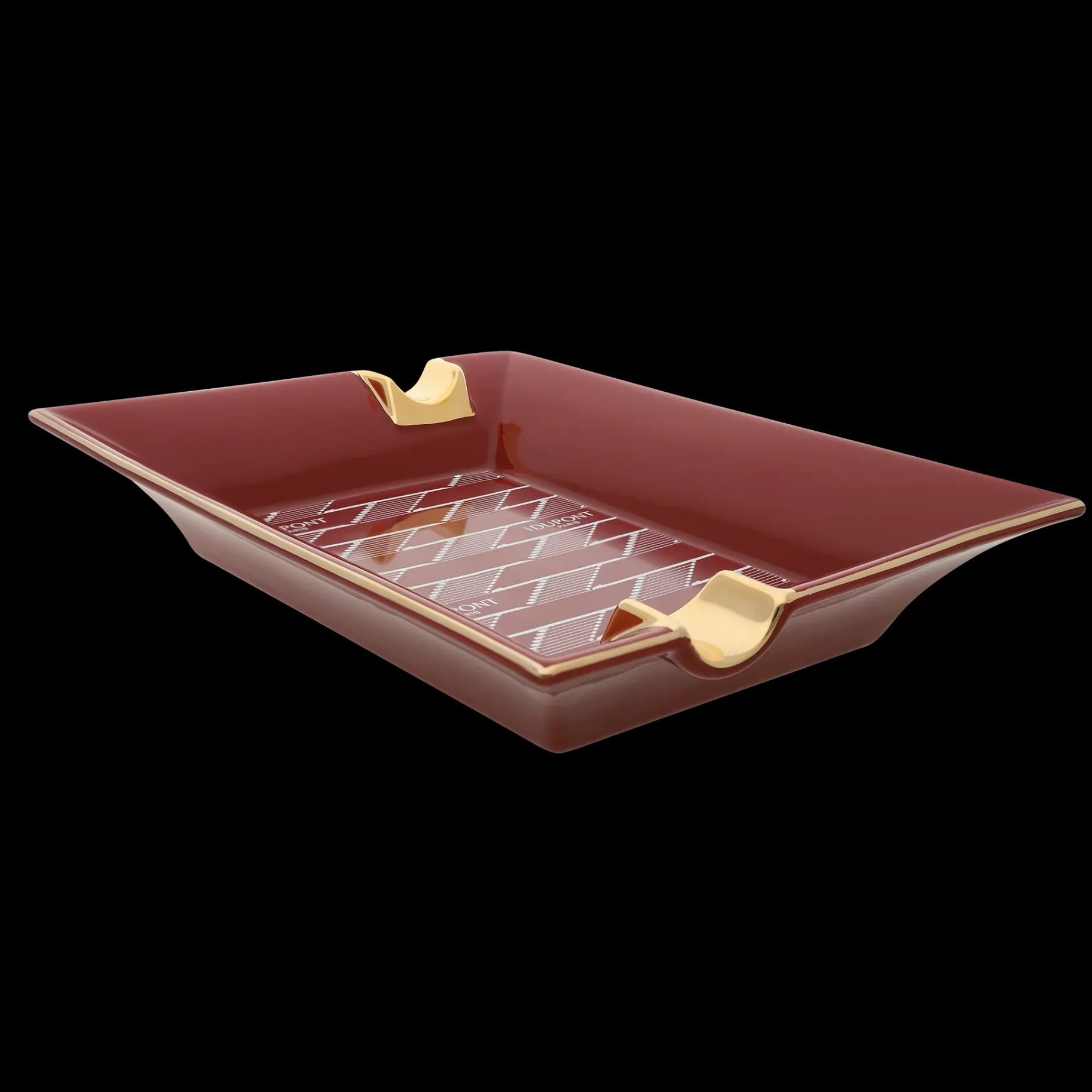Craftsmanship in metal, as well as the art of lacquer and coated leather, showcase the expertise of S.T. Dupont in the Monogram 1872 collection. Well-rooted in their time, the pieces in the collection all feature the new S.T. Dupont logo鈥攗pright, determined, and proud.Ashtray in porcelain decorated with the Monogram 1872 pattern in burgundy. Hand-painted notches and borders.