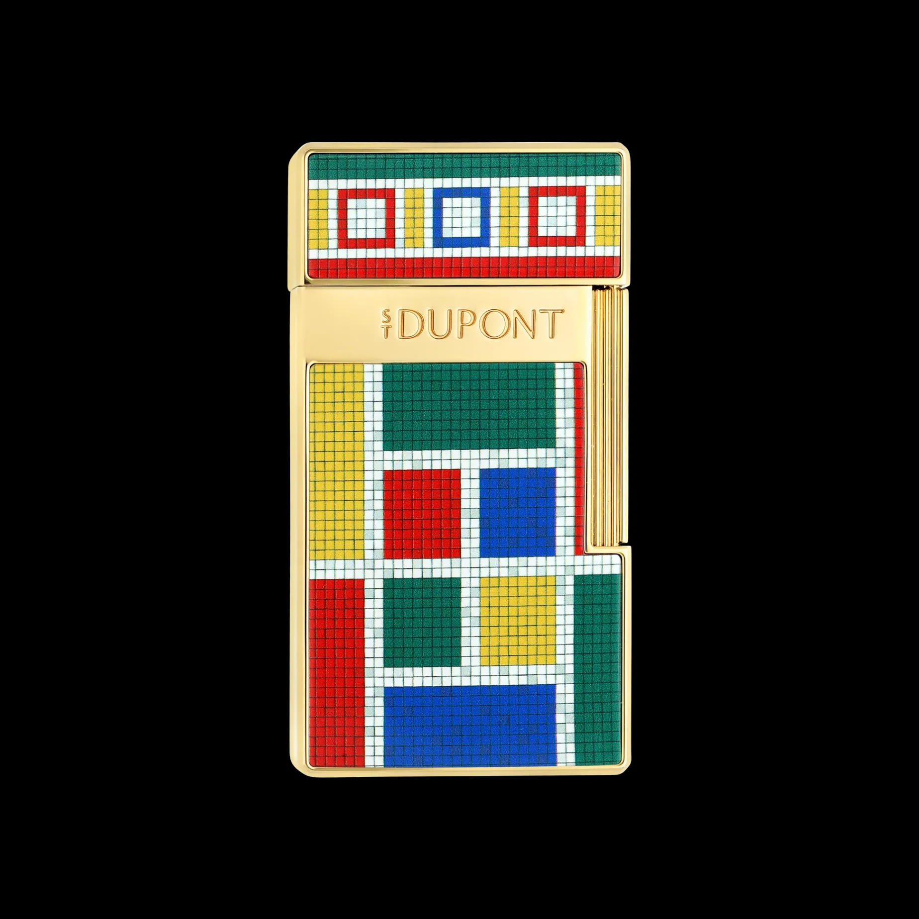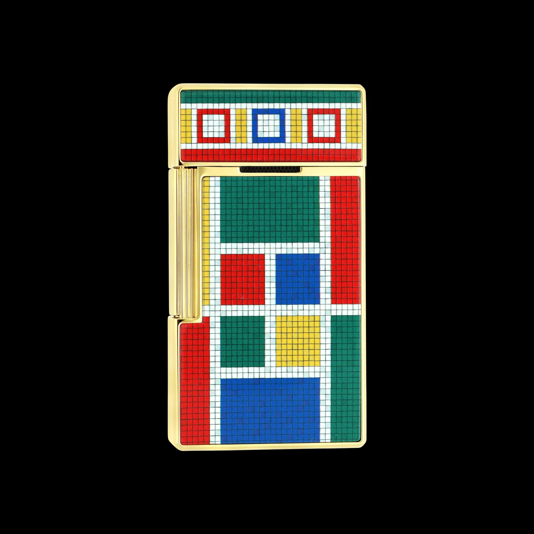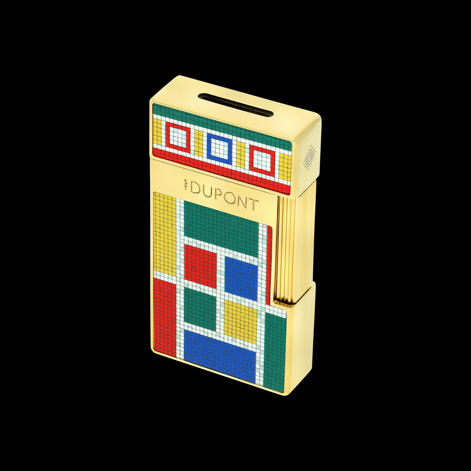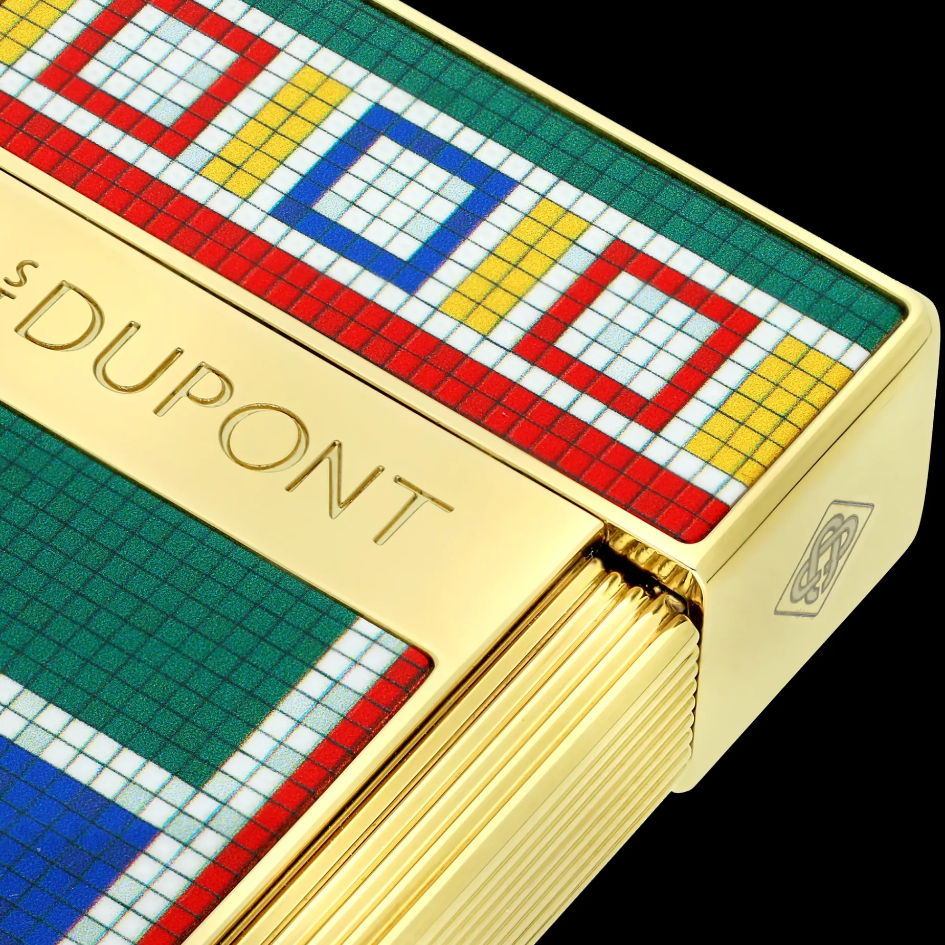 S.T. Dupont joins forces with the luxury house of Casablanca for a neo-antique collaboration that celebrates the beauty and elegance of sport. Biggy lighter with mosaic motif. 2 cm adjustable blue torch. Gold finish. Lighter supplied empty of gas, refill sold separately.