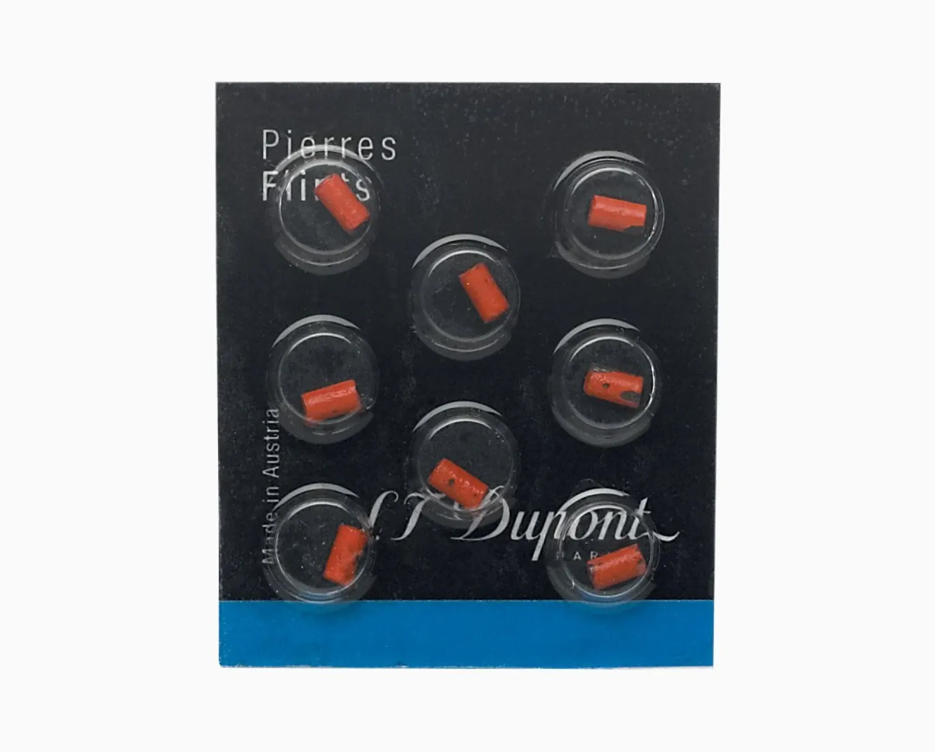 Red flint stone. Sold in packs of 8 stones. For the following lighters: Ligne Initial, Le Grand S.T. Dupont, Ligne 8, Line-D, Mon Dupont, Liberté.