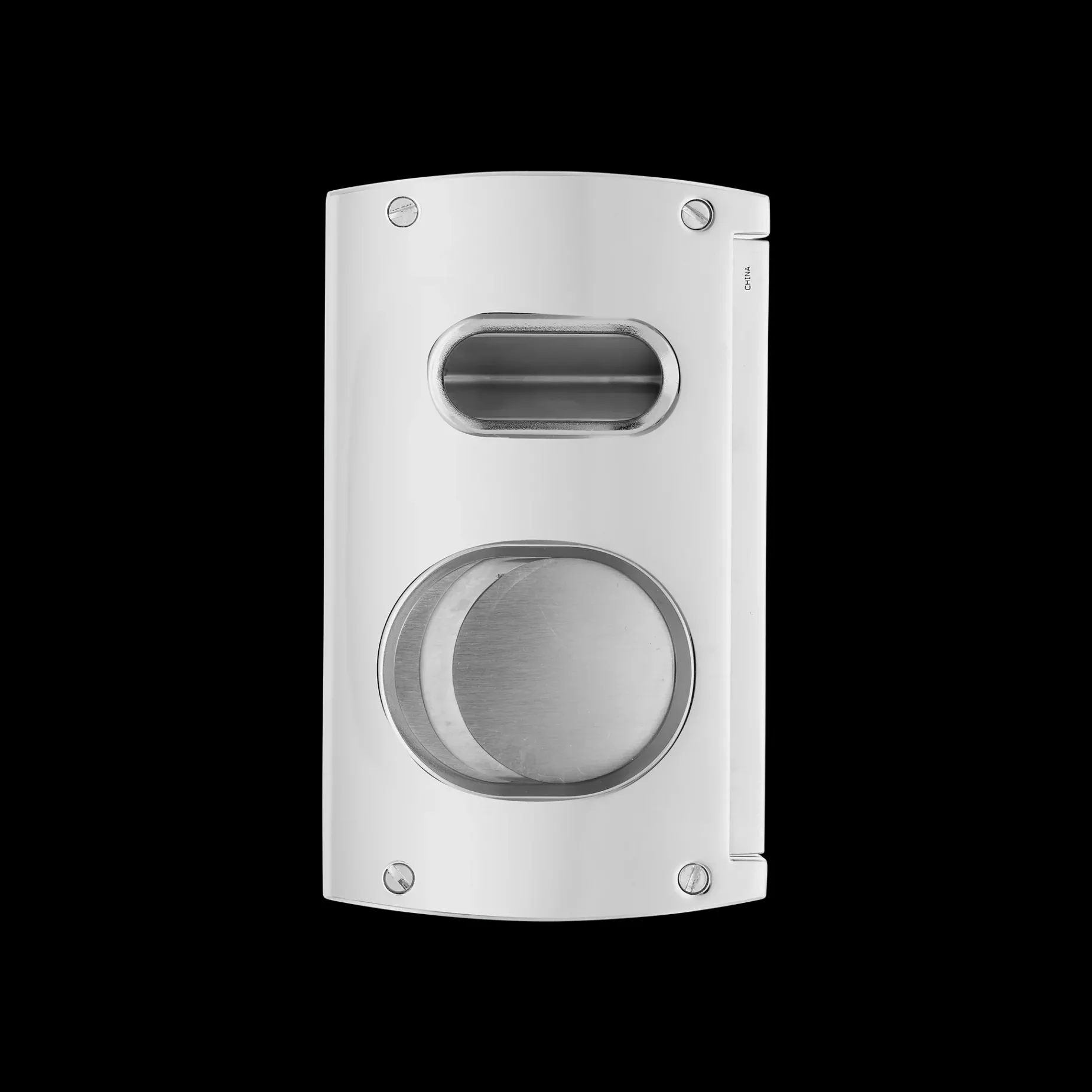 Double blade cigar cutter, equipped with a double blade and a V-CUT blade. Chrome finish.