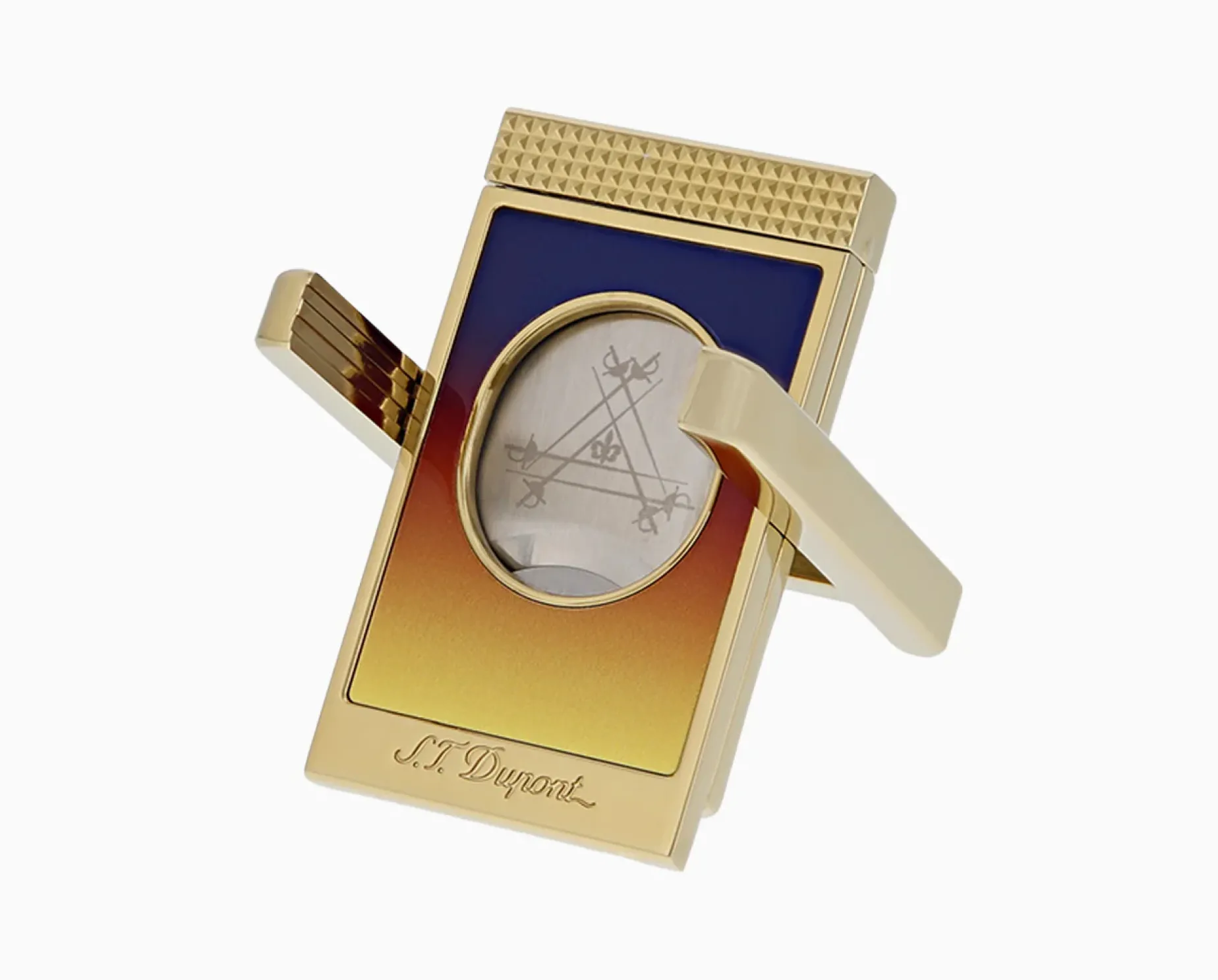 Montecristo and S.T. Dupont, both synonymous with unique craftsmanship, have joined forces to create exceptional products. This new collection will delight fans of both brands. The cigar cutter stand is lacquered with a violet gradient, the logo of the prestigious Montecristo cigar brand is stamped on the blade face, while the other blade face features a golden sun and moon decoration. The collection includes 3 lighters: Line 2, Le Grand Dupont, Maxijet. Also, two pens from the Line D Large collection and accessories: a leather case for three cigars, a cigar cutter and a pair of cufflinks.