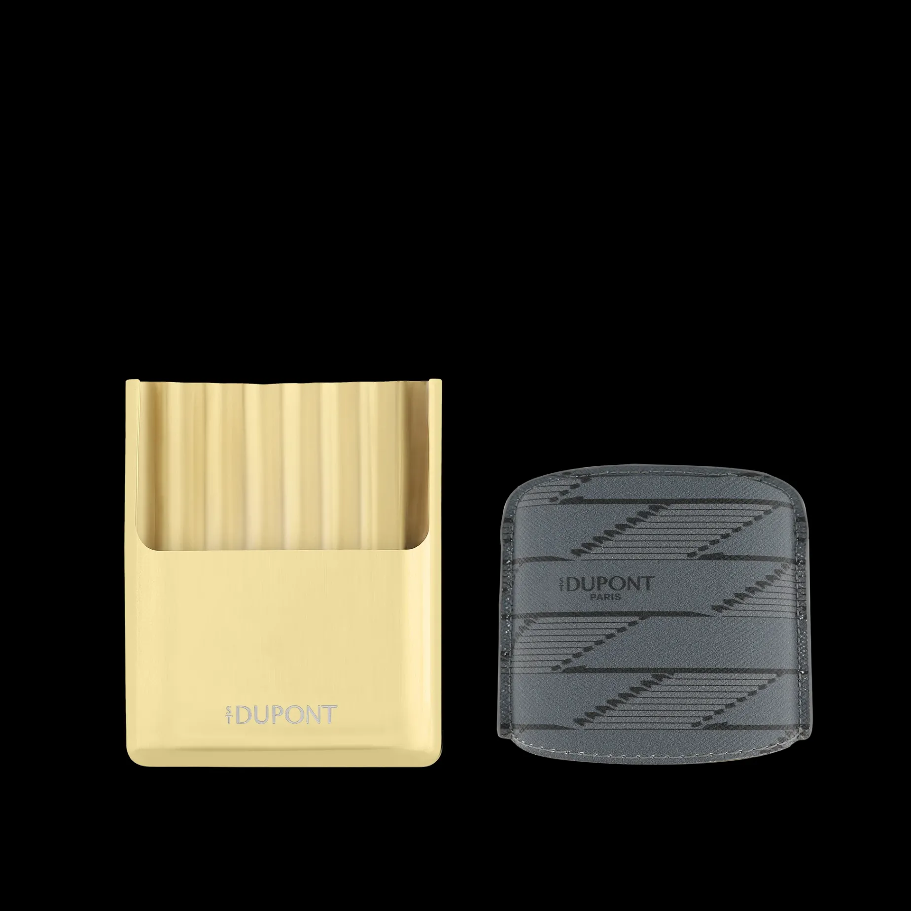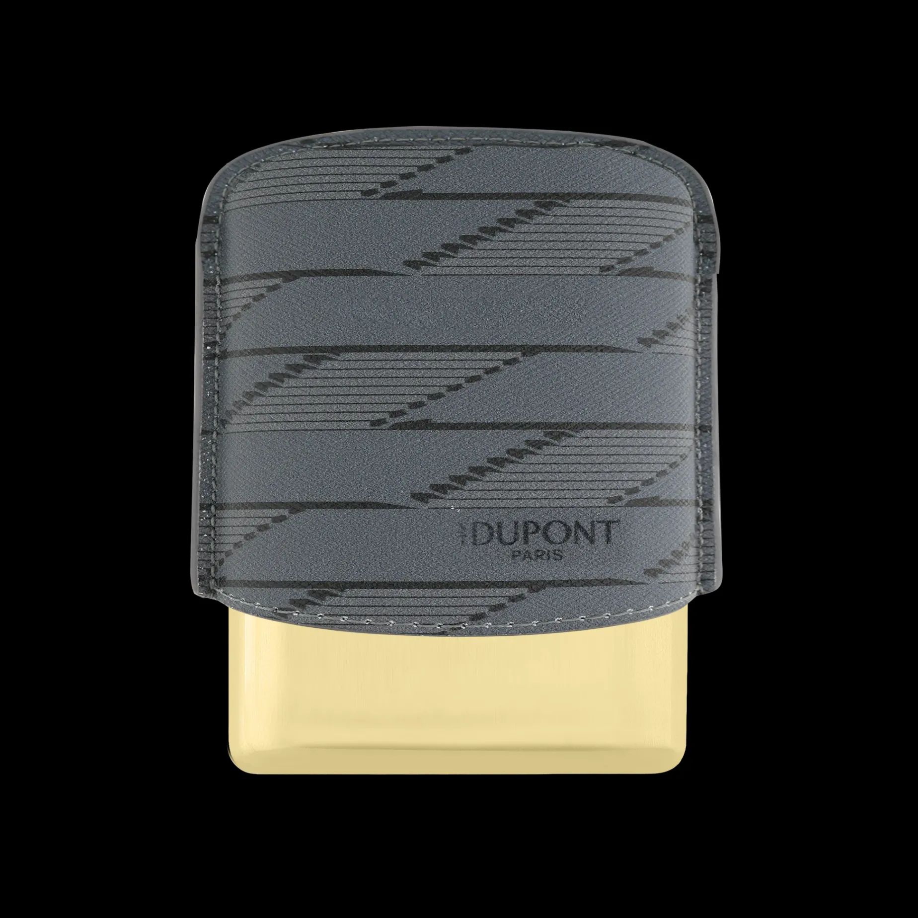 Craftsmanship in metal, as well as the art of lacquer and coated leather, showcase the expertise of S.T. Dupont in the Monogram 1872 collection. Well-rooted in their time, the pieces in the collection all feature the new S.T. Dupont logo鈥攗pright, determined, and proud.Coated canvas cigarette/cigarillo case decorated with the Monogram 1872 pattern in black and a gold metal base.