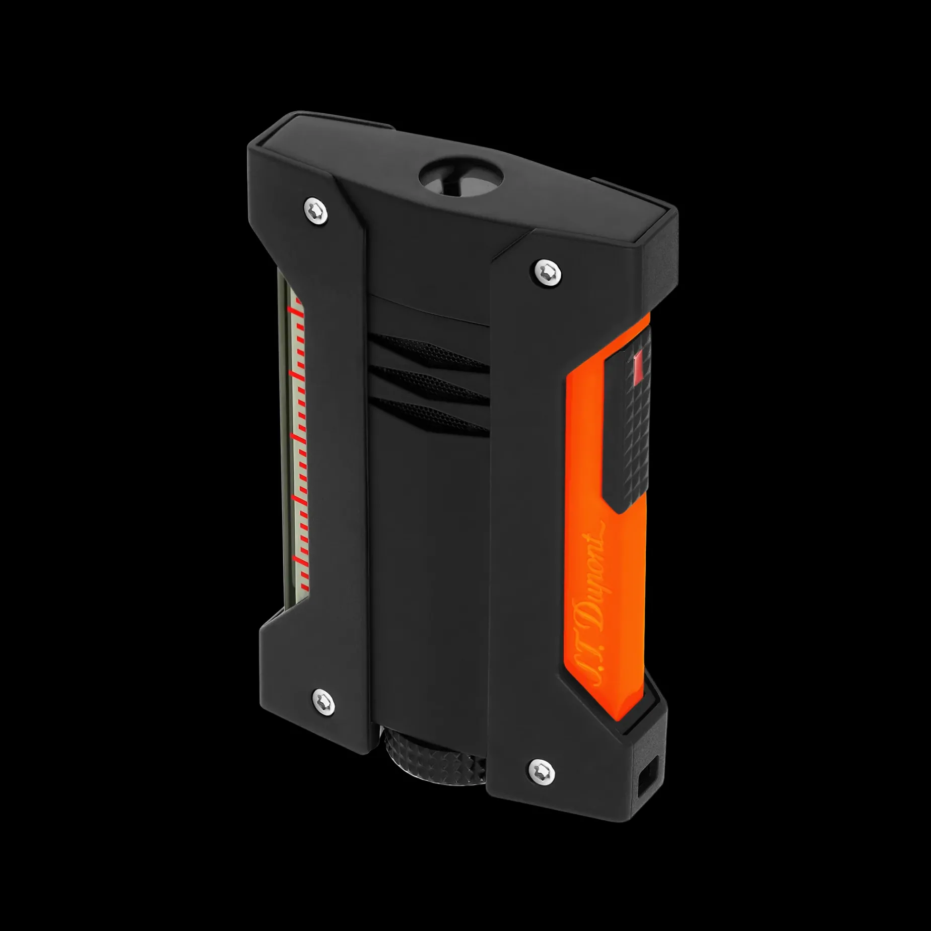 Designed to bring new energy to our classics – and to our everyday lives, the pieces in the Fluo collection are inspired by the latest trends in fashion and automotive design. With Fluo, the legendary S.T. Dupont’s legendary lacquer takes all the liberty in the world, making itself pop and light, for lives that are always on the move, dynamic and whirring.Extreme Défi lighter in matte black with fluorescent orange trigger. Injection-molded metal body with a highly resistant semi-rigid protective cover. Powerful, wind-resistant bluee torch flame. Defi Extreme is effective in the coldest temperatures (-6°C) to the hottest temperatures (+45°C) and operates at altitudes of over 2400 meters.Associated gas refill: red for Défi Extrême; XXtrême (REF 900436). Lighter supplied empty of gas, refill sold separately.