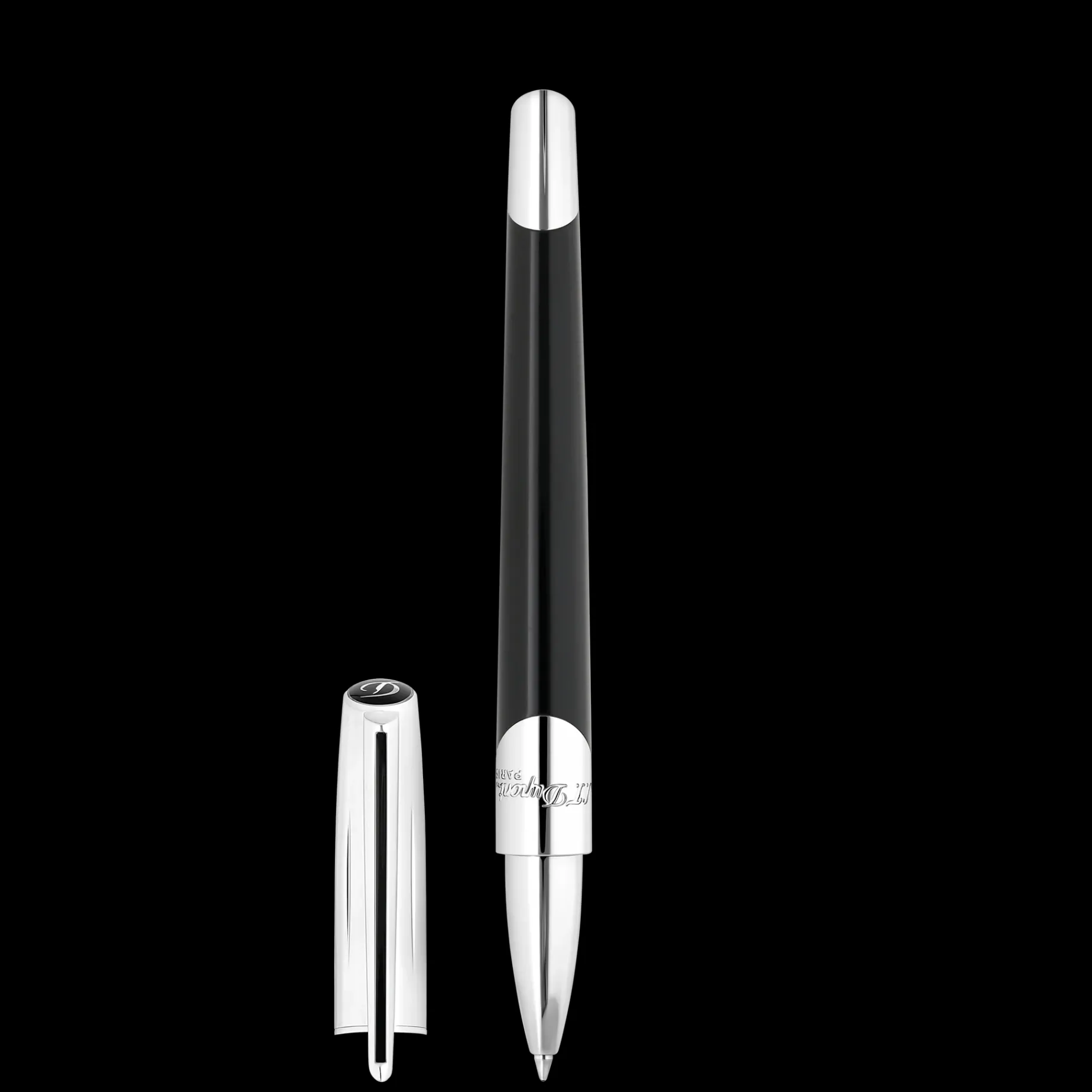 Silver and black Roller Pen Associated refill: 040840 Blue 040841 Black Warning: Writing instrument with magnetic closure. Magnets are strongly discouraged for pregnant women, those with metal implants or those wearing cardiac stimulators (pacemakers, insulin pumps, etc.). It is also recommended to avoid prolonged exposure to credit cards, mechanical or quartz watches, mobile phones or any other magnetic device as the magnetic field emitted could damage sensitive objects. This product is not a toy. Keep out of reach of children.