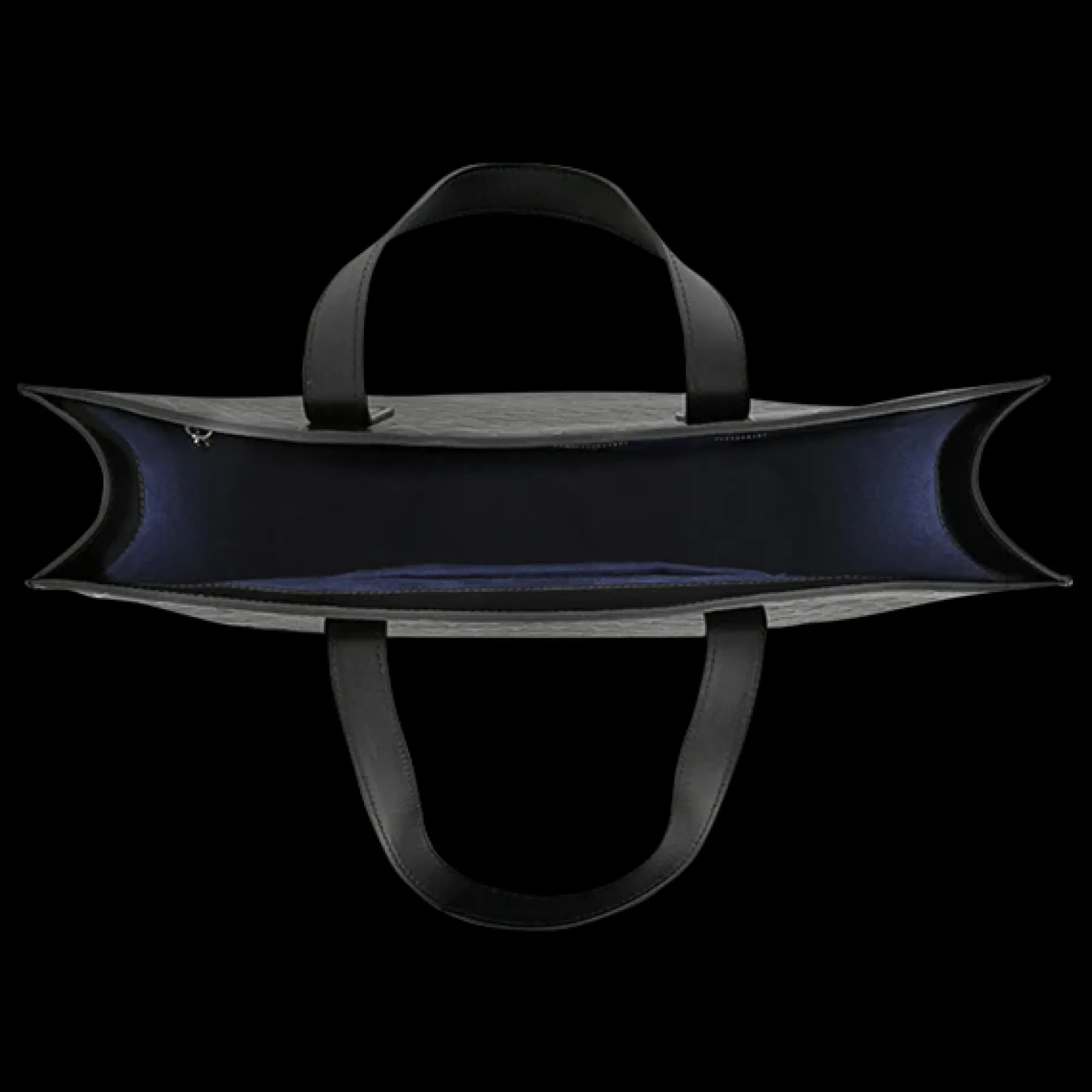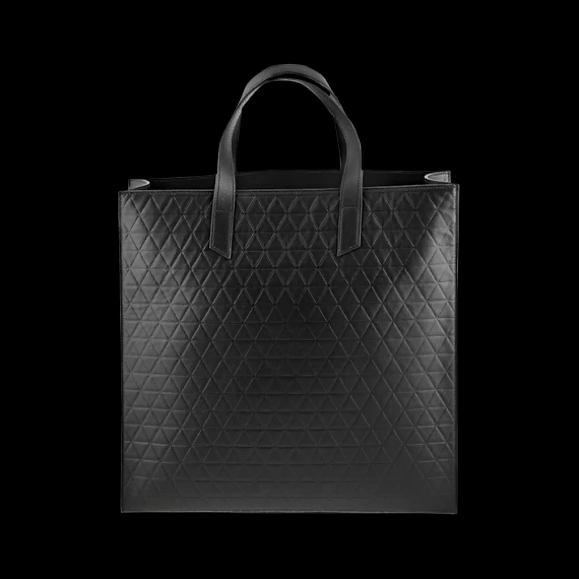 Embossed leather tote with its Firehead pattern. Internal pockets with compartments for writing instruments, lighter and its laptop compartment up to 14″. The leather used on all models of the Firehead collection is certified by the Leather Working Group.