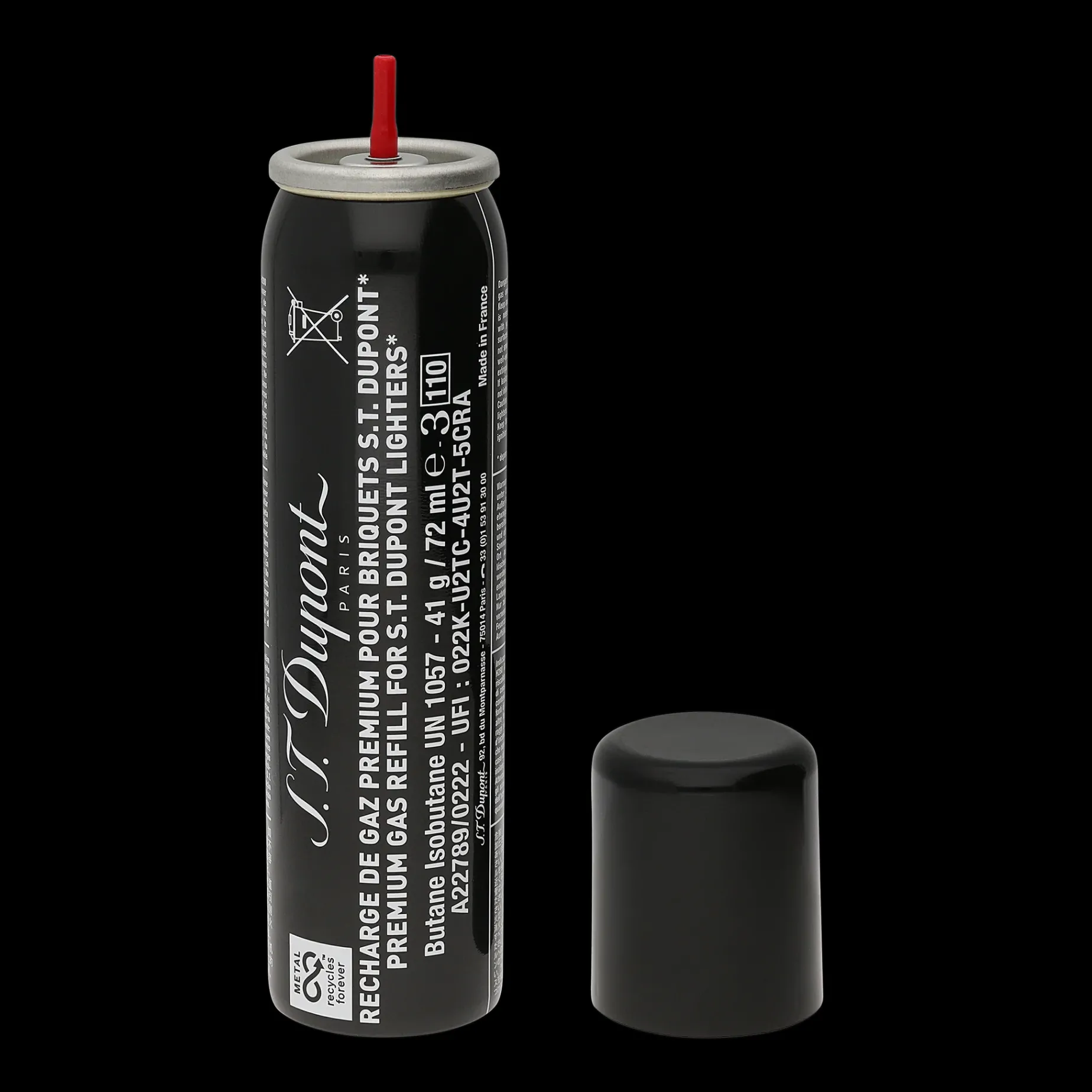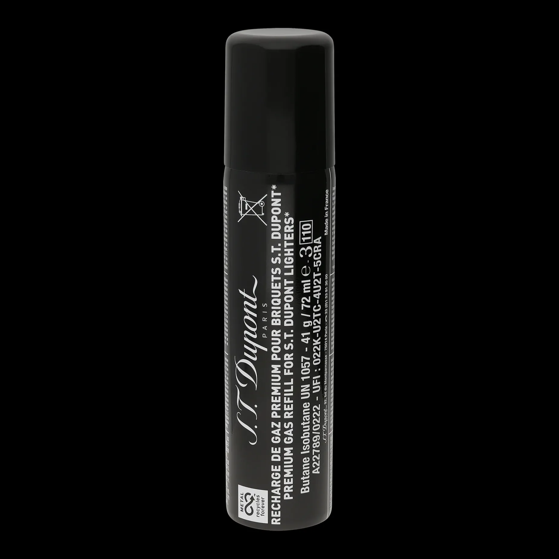 Black gas refill. Sold per unit for the following lighters: Liberté, Ligne 2 Torch, MiniJet, MaxiJet, Slim 7, The Wand, Keychain Lighter and Miniature Lighter with Chain.