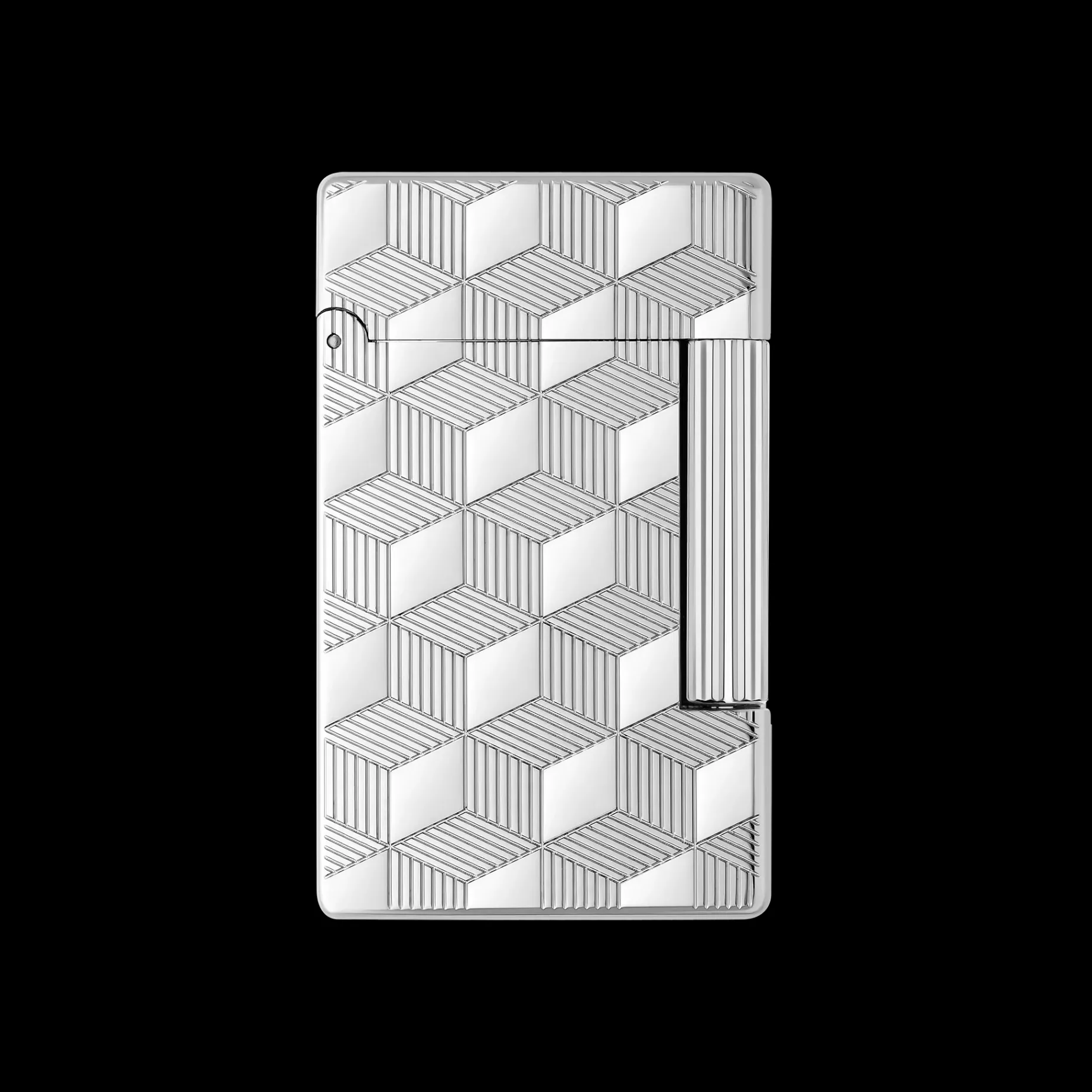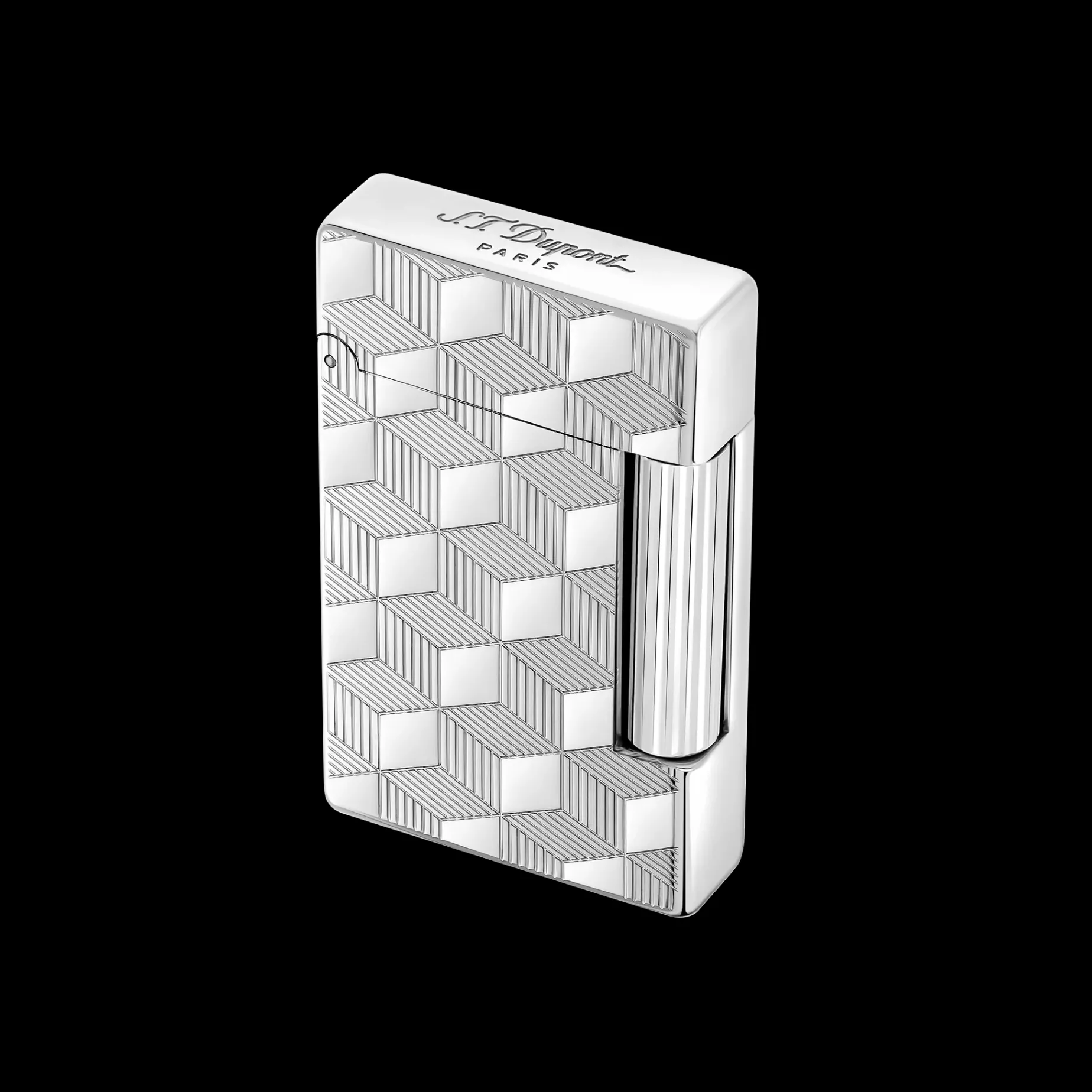 Initial lighter, cube guilloche decor, palladium finishes.With a double yellow flame. Associated lighter stone: red (REF 900650)Associated gas recharge: blue (REF 900434) Lighter delivered empty of gas, refill sold separately.