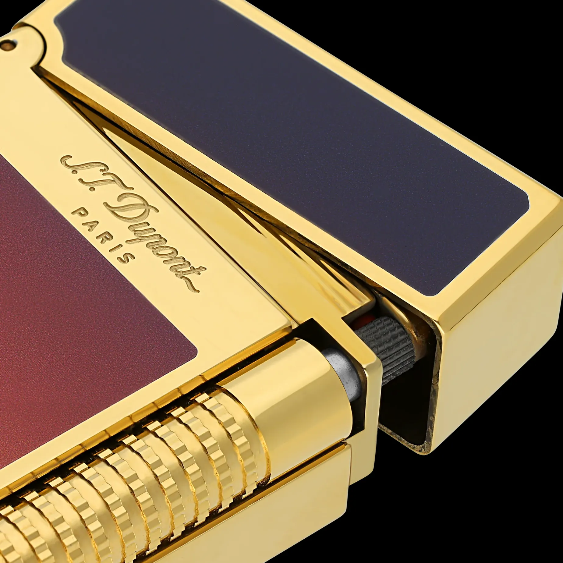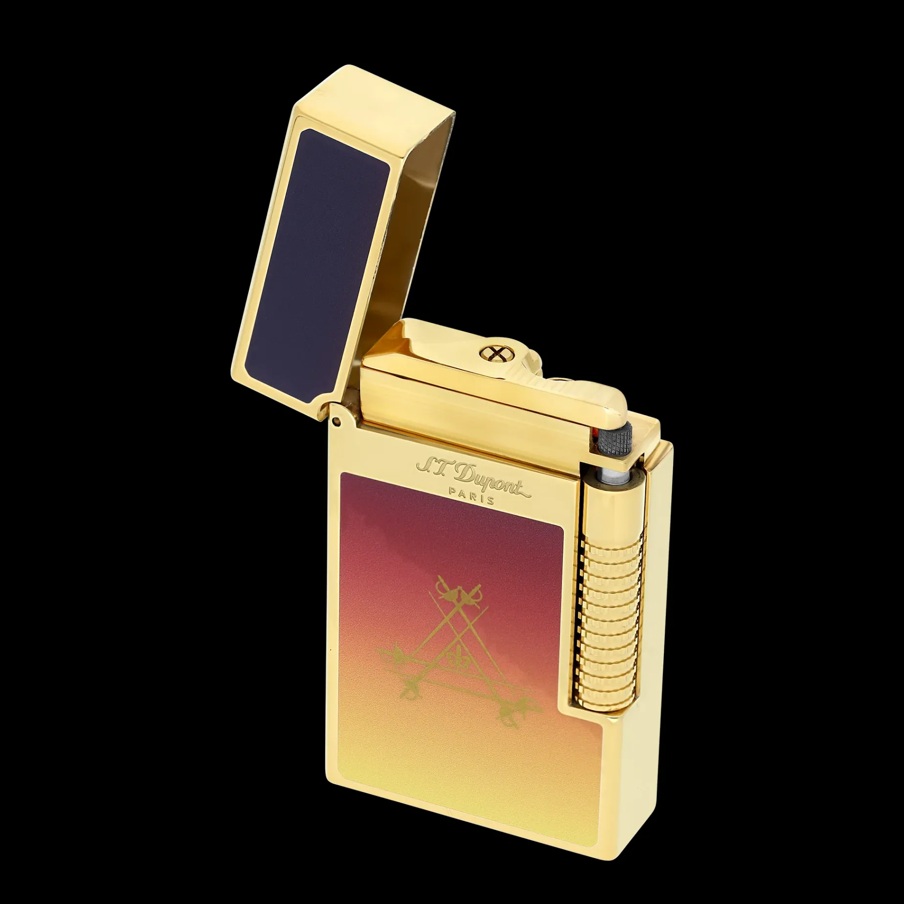 Montecristo and S.T. Dupont, both synonymous with unique craftsmanship, have joined forces to create exceptional products. This new collection will delight fans of both brands. The Grand Dupont is lacquered with a violet gradient, on the front face the logo of the prestigious Montecristo cigar brand is stamped in gold on one of the faces, while the other face presents a golden sun and moon decoration. It has a double flame system, a first low flame gently warms the cigar slowly, while a powerful and uniform torch flame ensures lighting in all circumstances. The collection includes 2 other lighters: Line 2 and a Maxijet. Also, two pens from the Line D Large collection and accessories: a leather case for three cigars, a large ashtray, a cigar cutter and a pair of cufflinks. Gas refill associated: red (REF 000435) red stone (REF 900651)