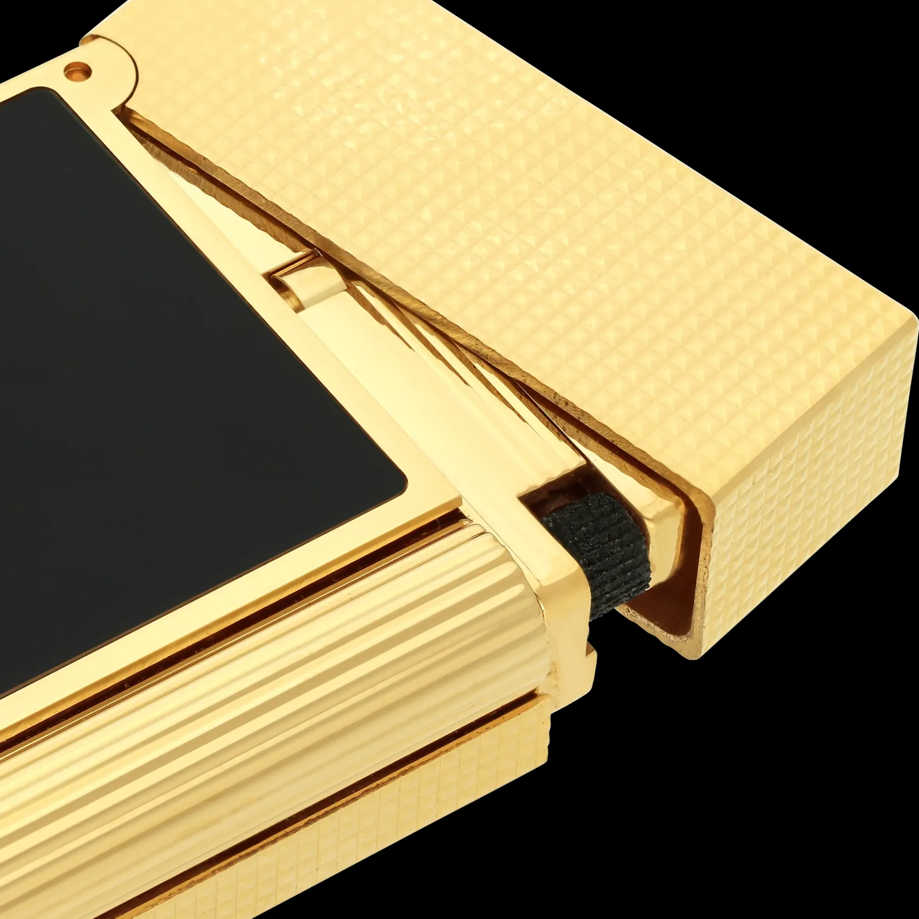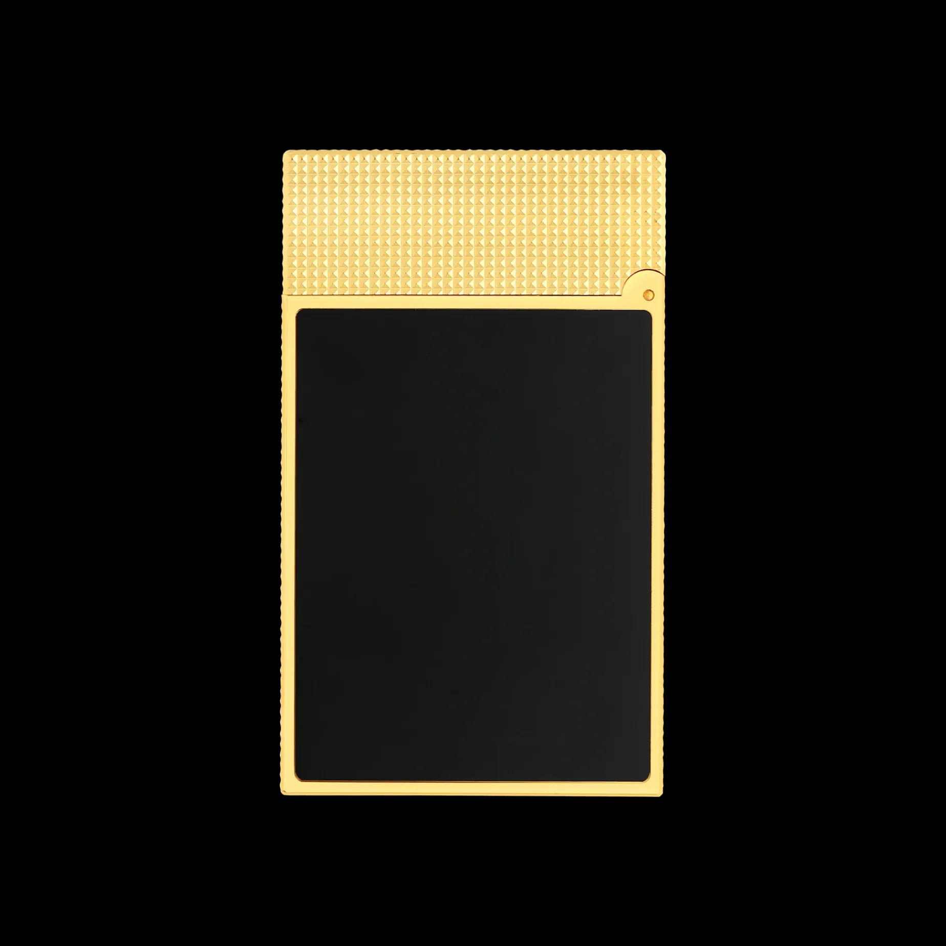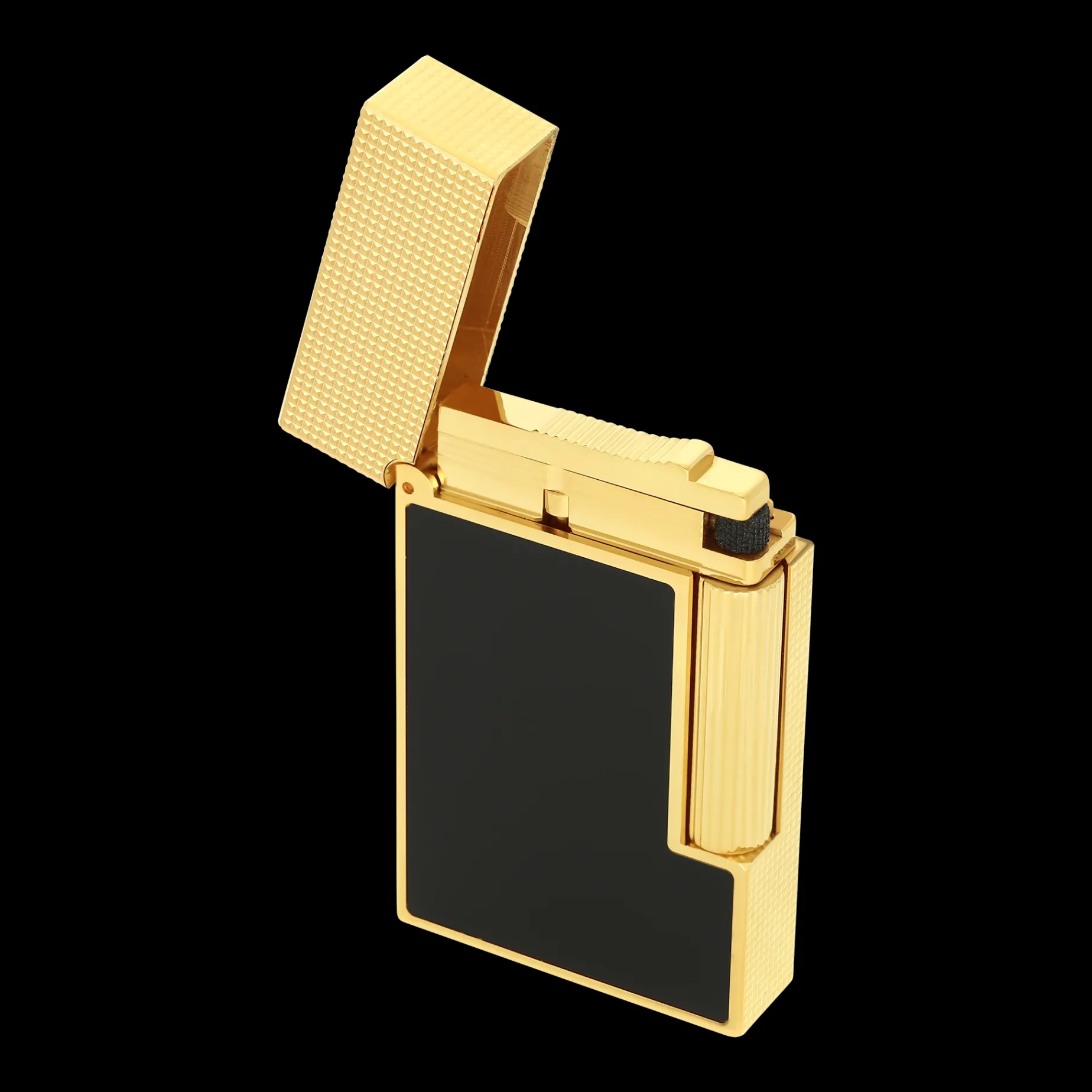 Classic Line 2 large model lighter with microdiamond tip decoration in yellow gold, matte black lacquer and crystalline opening. Associated lighter stone: black (REF 900600). Associated gas refill: red (REF 900435) Lighter delivered empty of gas, refill sold separately.