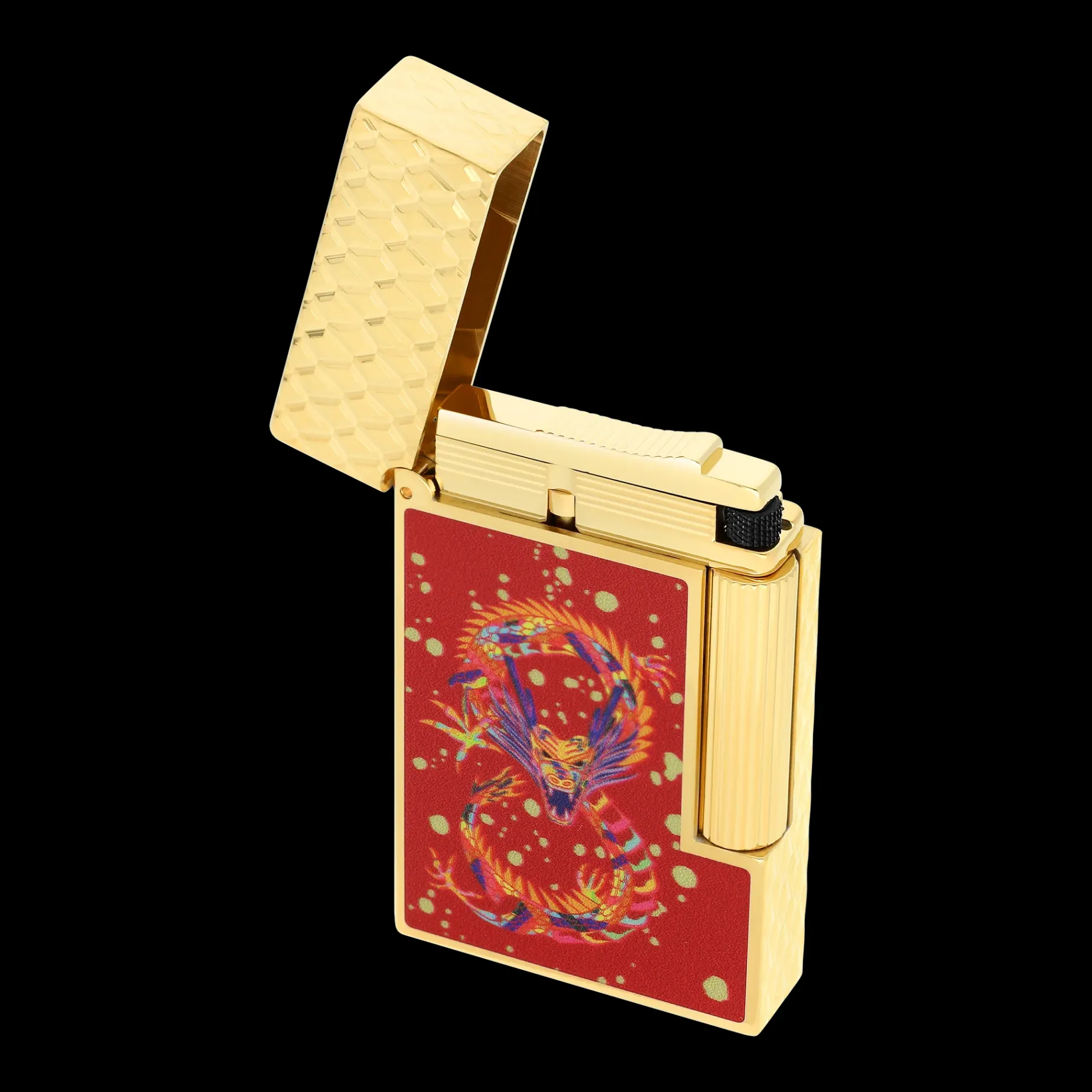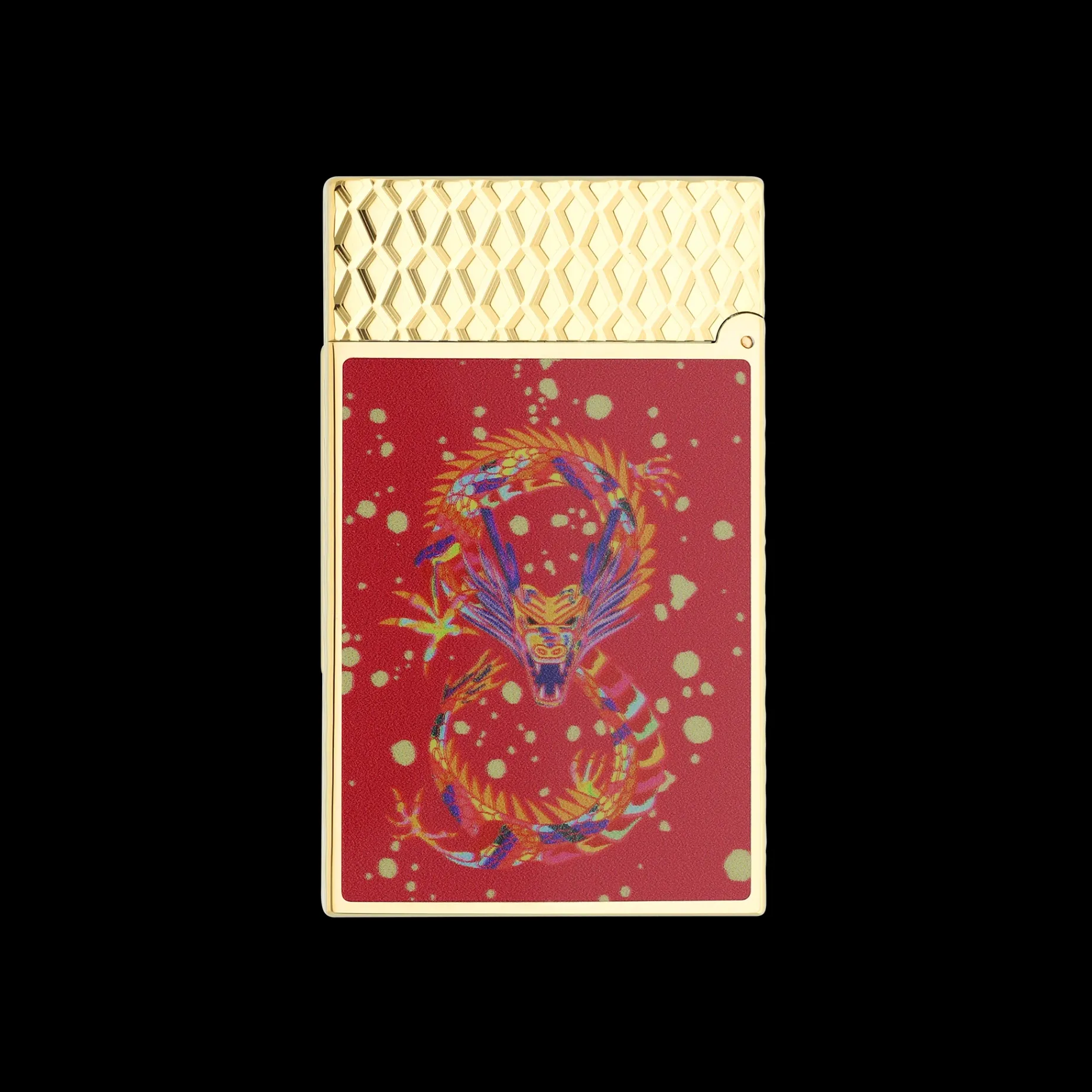 Created for the Chinese New Year of the Dragon, this collection celebrates the mythical creature as much as S.T. Dupont’s craftsmanship. Writing instruments, lighters and cigar accessories reinvent the iconic know-how of the House with the creation of a new dragon scale guilloche. Both steeped in tradition and fiercely modern, three lines make up the Dragon collection: Dragon Red, Dragon Black and Dragon Color Animation. The Dragon Red and Dragon Black lines see S.T. Dupont’s iconic products adorned with a dragon inspired by anime and street art. Bursting from a cloud of confetti, it symbolizes the joy and infinite possibilities offered by this new lunar year. Illustrated on the body of the iconic Maxijet, the S.T. Dupont dragon undulates on this burgundy lighter. Associated refills: Red (REF 000434) Black stone (REF 900601)