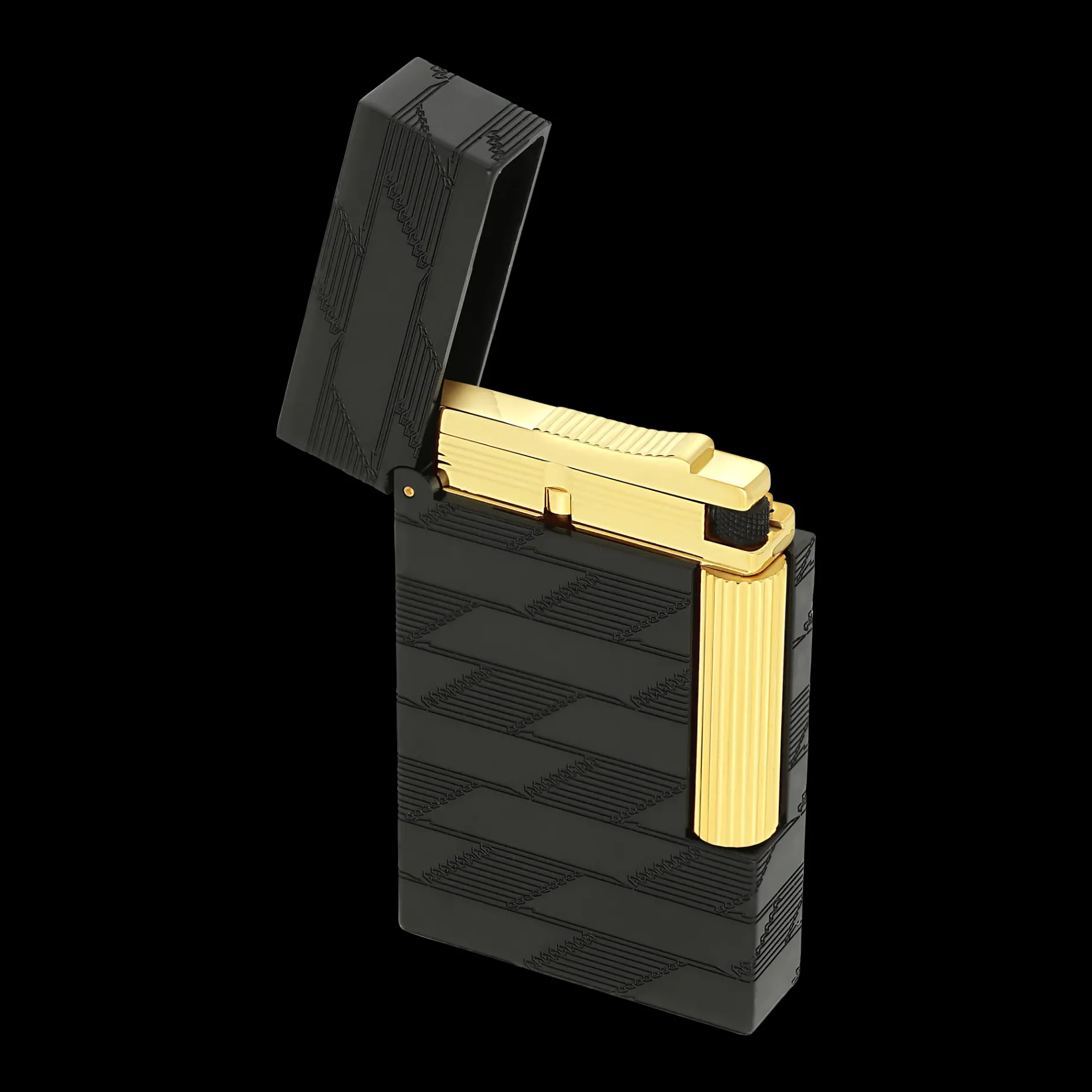 Craftsmanship in metal, as well as the art of lacquer and coated leather, showcase the expertise of S.T. Dupont in the Monogram 1872 collection. Well-rooted in their time, the pieces in the collection all feature the new S.T. Dupont logo鈥攗pright, determined, and proud.Ligne 2 Cling lighter, guilloche craftsmanship, Monogram 1872, with satin black and yellow gold finishes. Equipped with a double yellow flame and the famous “Cling” sound upon opening.Lighter delivered empty of gas, refill sold separately.