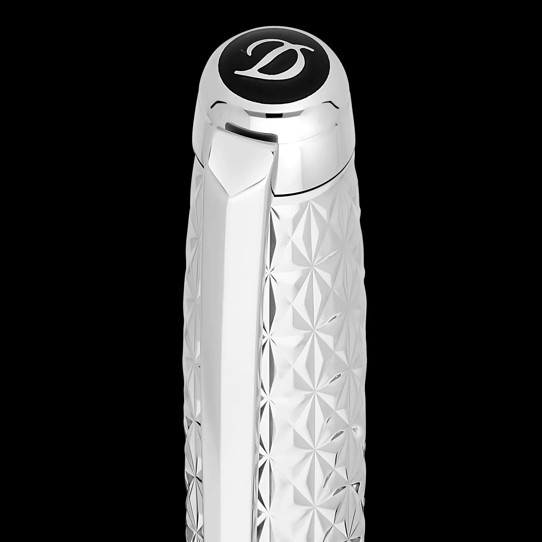 Inspired by the X-Bag, one of the bags from the leather goods collection developed this season by S.T. Dupont, Fire X presents its reinterpretation of the iconic flame tip on the classics of the House.Line D Eternity medium fountain pen in glossy black Dupont lacquer and palladium finishes.Orfèvre guilloche Fire X engraved cap.Solid 14-carat gold nib. Piston included.Manufactured in our workshops in Faverges, France.Available in ballpoint, rollerball, and fountain pen versions.Associated refills: 040112 Blue – 040110 Black – 040362 Red – 040363 Green – 040364 Turquoise.