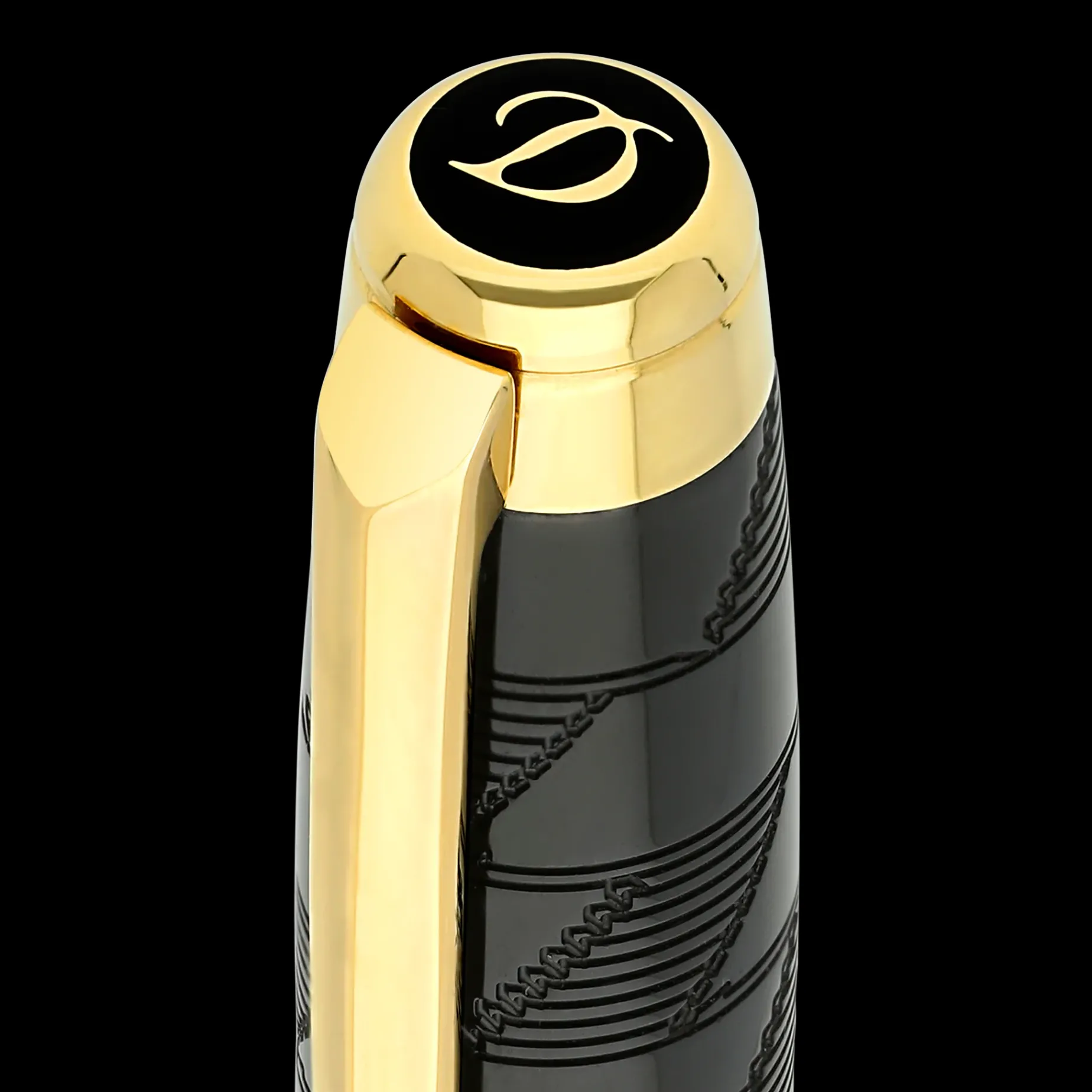 Craftsmanship in metal, as well as the art of lacquer and coated leather, showcase the expertise of S.T. Dupont in the Monogram 1872 collection. Well-rooted in their time, the pieces in the collection all feature the new S.T. Dupont logo鈥攗pright, determined, and proud.Line D Eternity medium ballpoint pen with guilloche craftsmanship, gold finishes, and black PVD from the Monogram 1872 collection.Articulated Sword clip.Manufactured in our workshops in Faverges, France.Associated refills: 040853 Blue – 040854 Black – 040358 Pink – 040359 Red – 040360 Green – 040361 Turquoise
