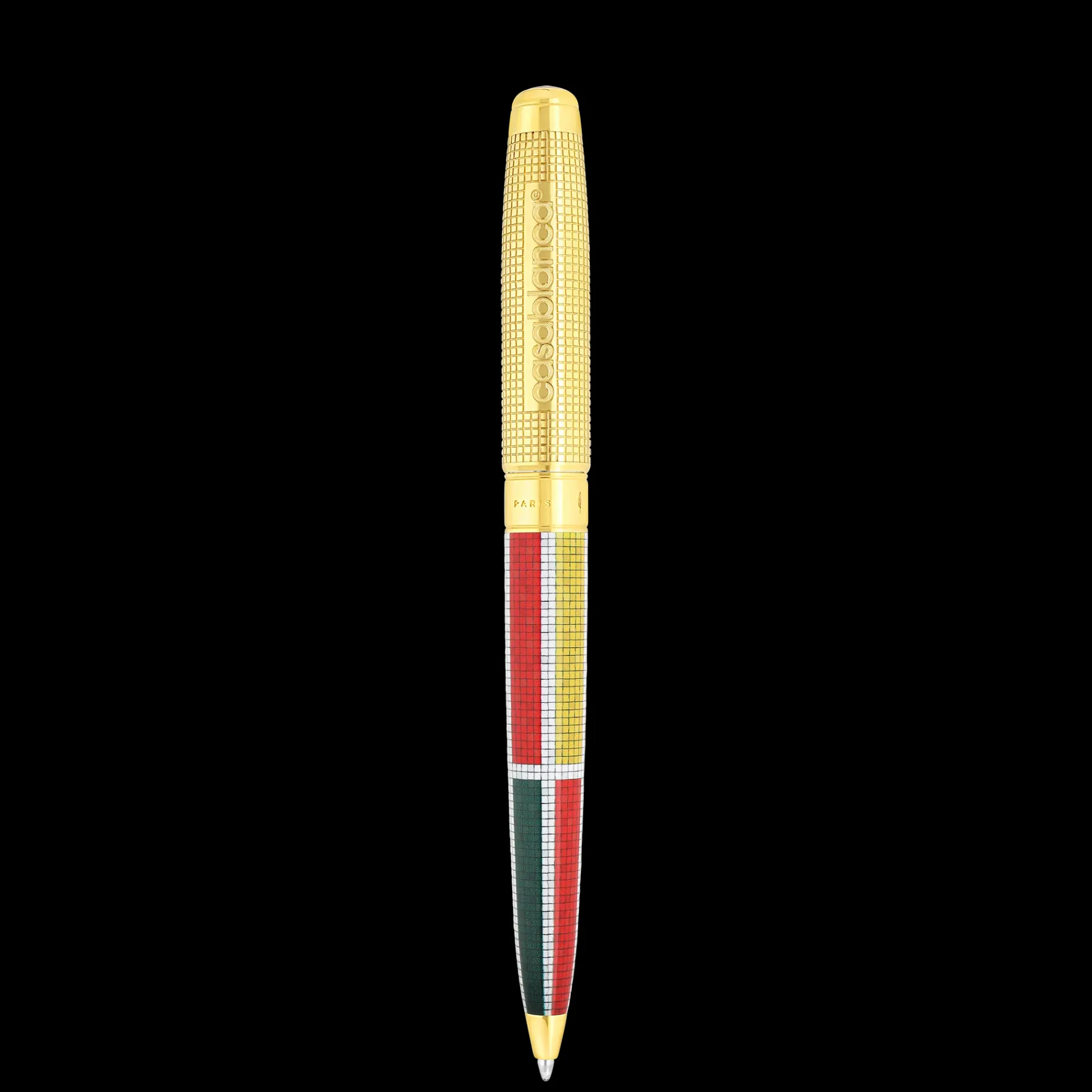 “S.T. Dupont joins forces with luxury house Casablanca for a neo-antique collaboration that celebrates the beauty and elegance of sport. Line D Eternity large biros in glossy multicolour Dupont lacquer and gold finish.Goldsmith’s guilloché mosaic cap.Made in our workshops in Faverges, France.Available in ballpoint, rollerball and nib versions.Related refills: 040853 Blue – 040854 Black – 040358 Pink – 040359 Red – 040360 Green – 040361 Turquoise”.