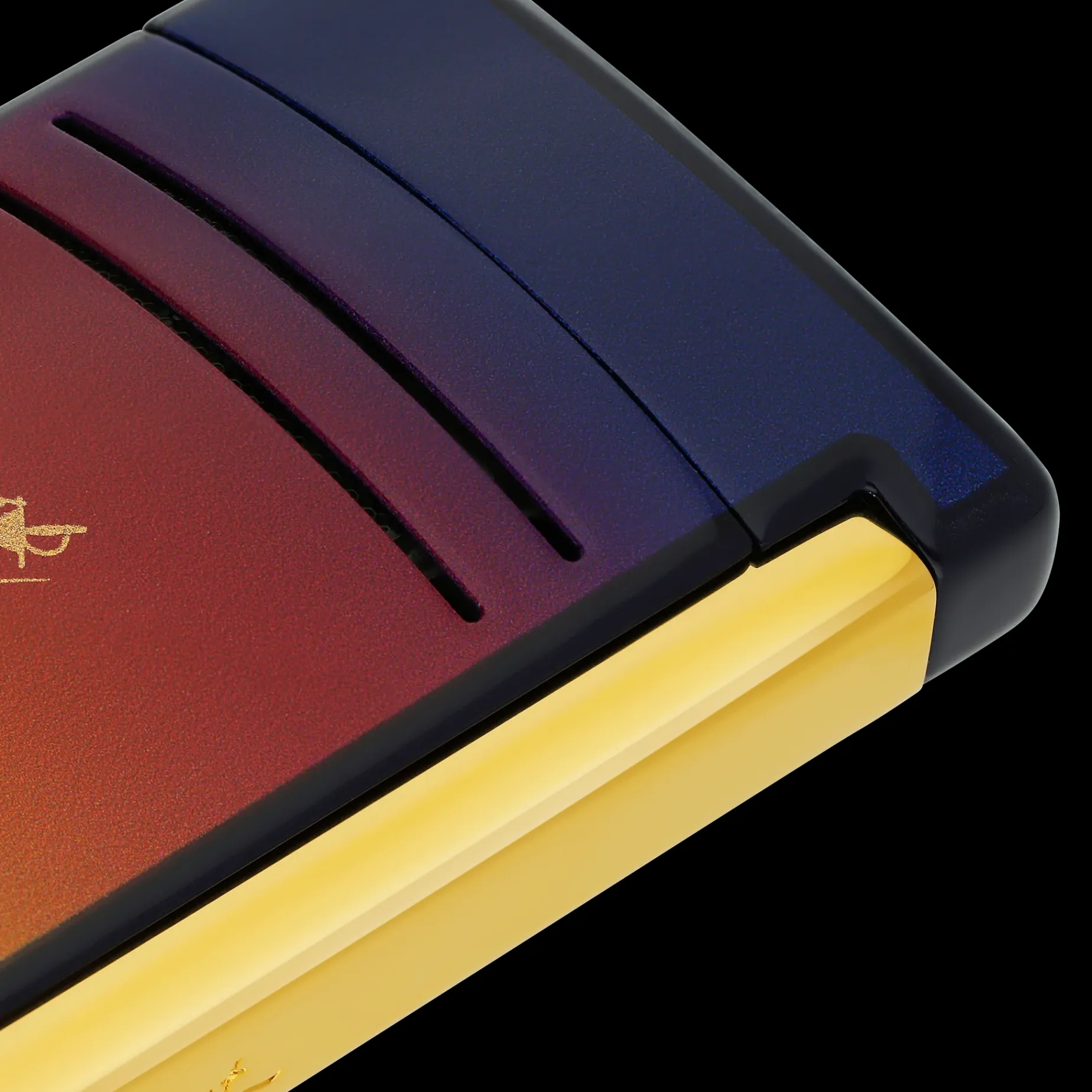 Montecristo and S.T. Dupont, both synonymous with unique craftsmanship, have joined forces to create exceptional products. This new collection will delight fans of both brands. The Maxijet is lacquered with a violet gradient, on the front the logo of the prestigious Montecristo cigar brand is stamped in gold on one side, while the other side features a golden sun and moon decoration. It has a torch flame, lights a cigar in such a way as to preserve all its distinctive aromas for the greatest pleasure of aficionados. The collection includes 2 other lighters: Line 2 and a Grand Dupont. Also, two pens from the Line D Large collection and accessories: a leather case for three cigars, a large ashtray, a cigar cutter and a pair of cufflinks. Associated gas refill: black (REF 000430)