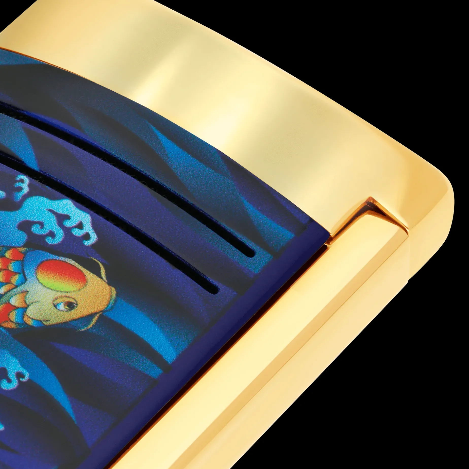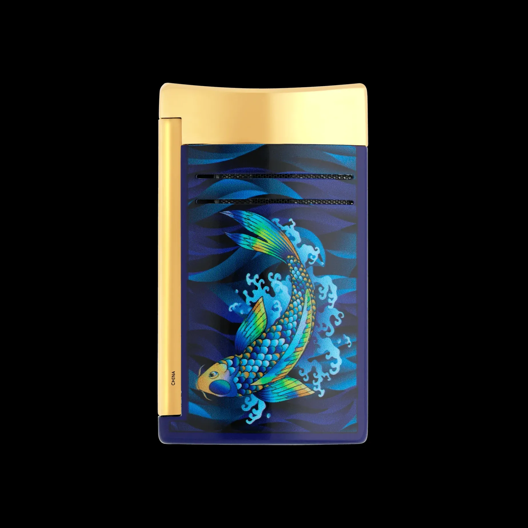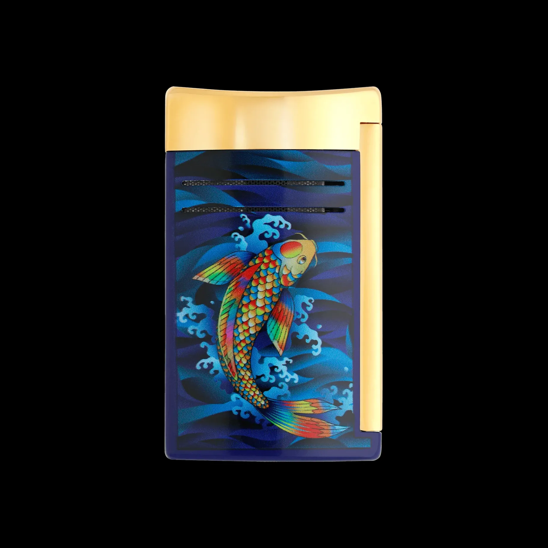 The new S.T. Dupont collection draws inspiration from Japanese woodblock prints, specifically the koi fish, a symbol of courage and perseverance. An captivating collection that pays tribute to the beauty of nature.Maxijet adorned with koi fish print and gold finishes.Equipped with a torch flame.Associated refill: Black (REF 000430)