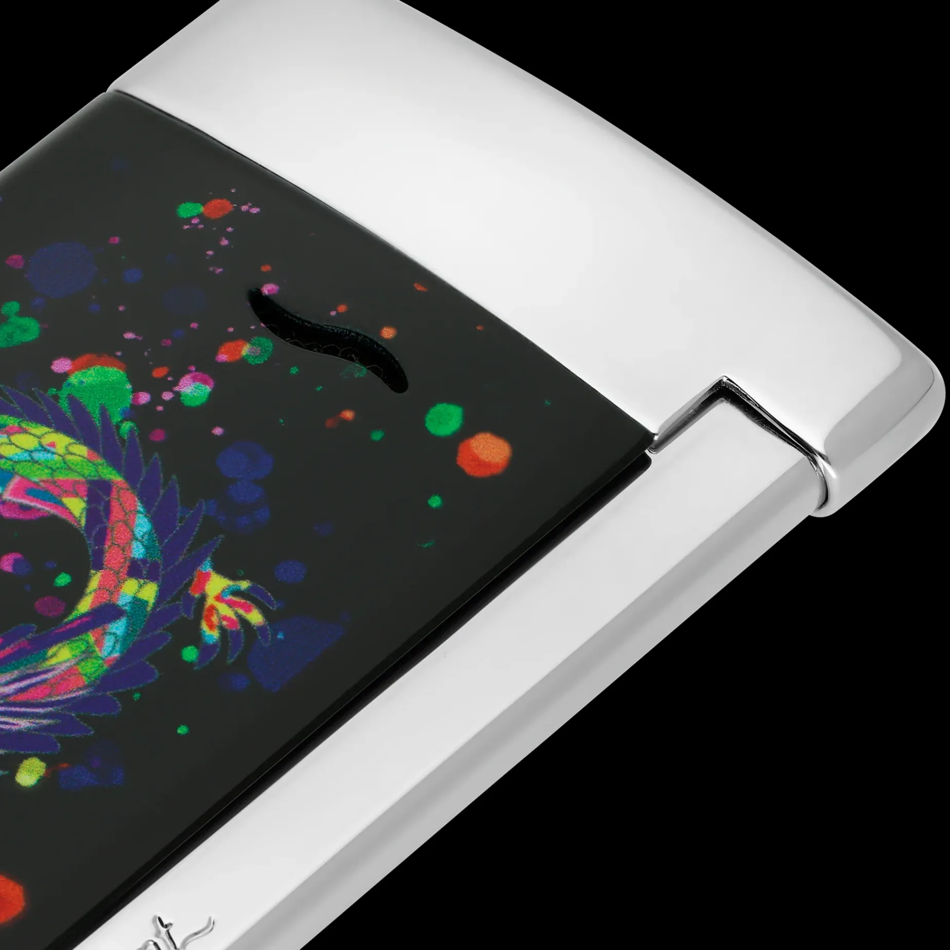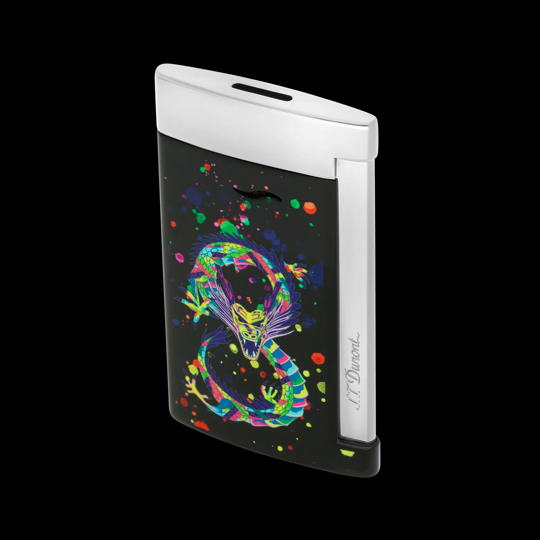 S.T. Dupont’s iconic dragon is featured on this sleek black and chrome Slim 7 lighter. Associated Refills: Black (REF 000430)