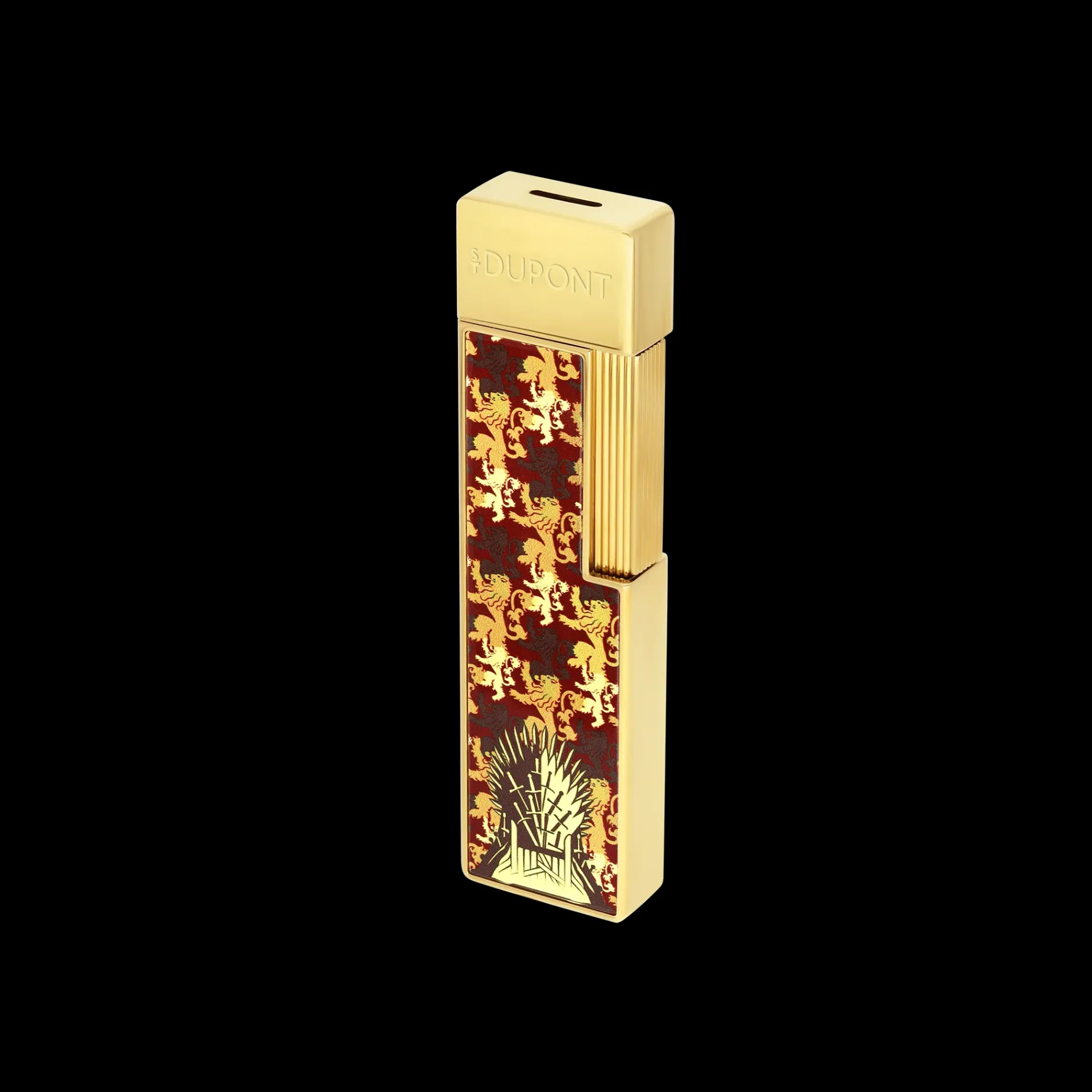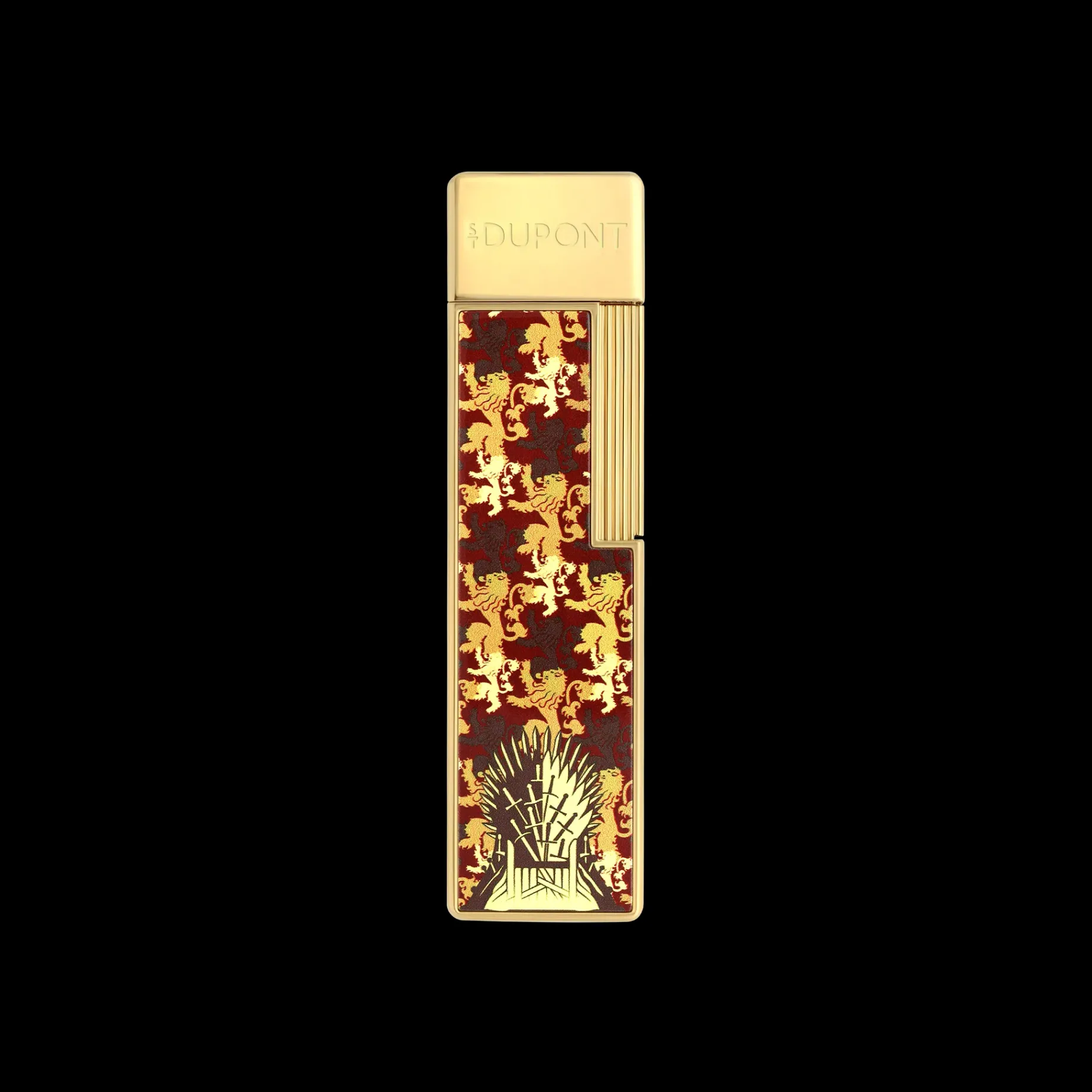 S.T. Dupont unveils an exclusive collaboration with Game of Thrones, marking the intersection of HBO’s flagship series with S.T. Dupont’s exceptional craftsmanship.The Maison has drawn inspiration from the rich and complex world of Game of Thrones to design three distinct collections, each inspired by the essential symbols of the series. The Throne, representing supreme power in the world of Westeros, the Fire and Ice Dragons, iconic figures in the series, and finally, the Noble Houses, the true pillars of the intrigue, all feature their emblems in a sublime and prestigious manner on unique creations.Twiggy lighter with the Lannister House emblem, the lion, and its motto “Hear Me Roar.” Features a 1 cm blue torch flame with adjustable flame. Gold finish.Lighter is shipped without gas; refill sold separately.