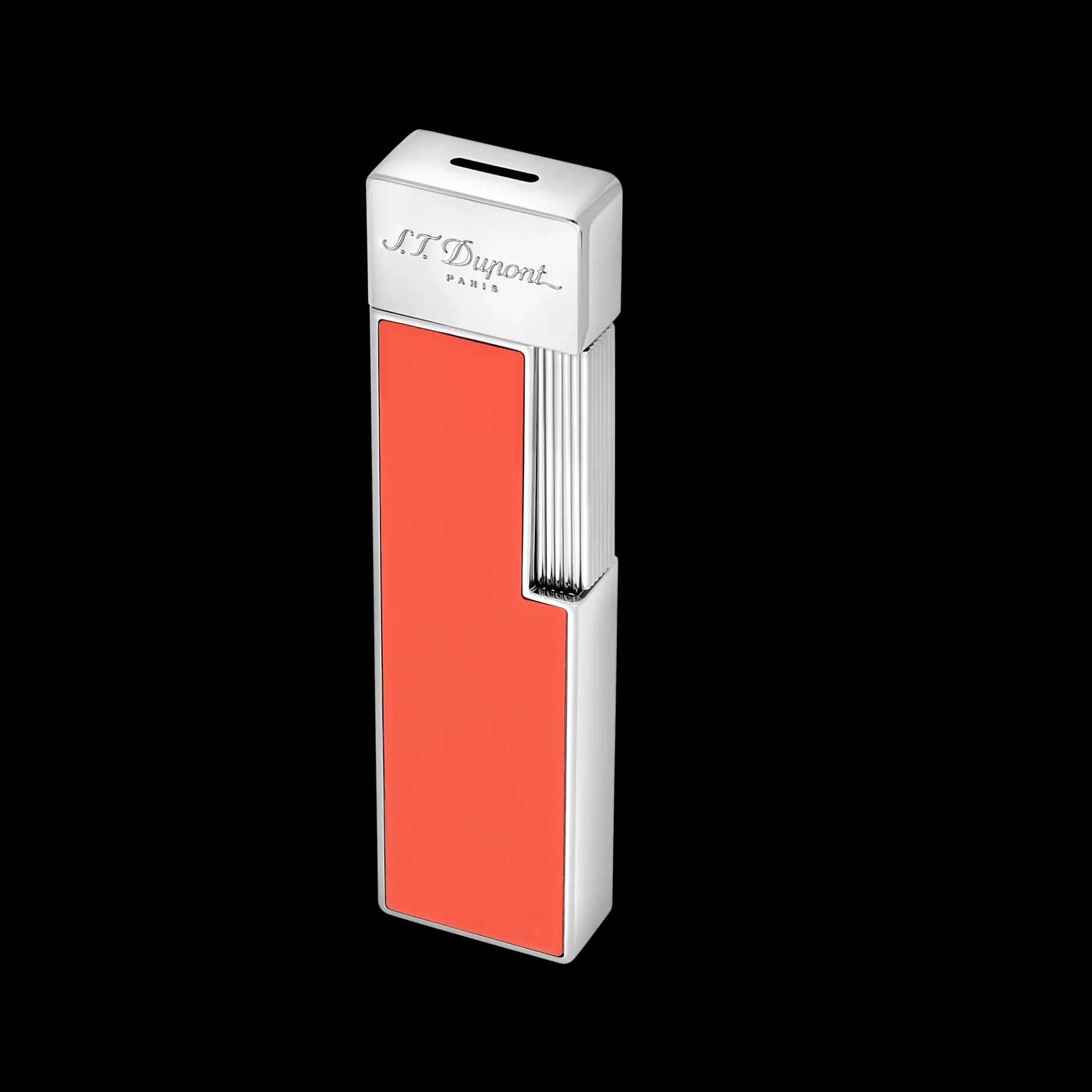 The Twiggy Lighter in Coral Lacquer and Chrome Finish is sleek and long-shaped. Its lacquer finish emphasizes its silhouette and embodies the spirit of the 60s. With its 1 cm torch flame, it is perfect for lighting candles or cigarettes, making it a must-have for smokers and non-smokers alike. Just like Slimmy, this model comes in five delicate colors: sky blue, coral, dark blue, black and white. Associated gas refill: black (REF 000430)